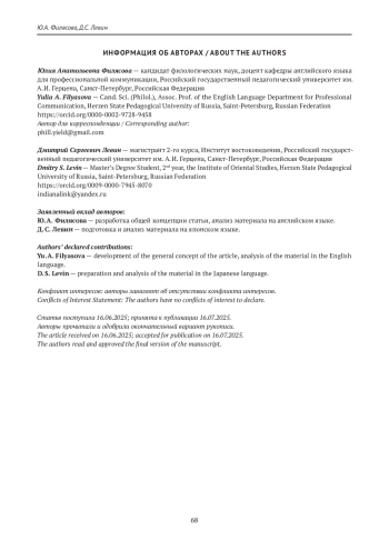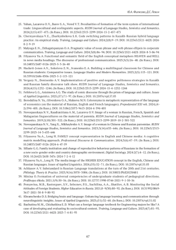 23. Beloglazova E. V., Osmak N. A., Shuvalova E. K. Russian culture through the prism of English, Finnish and Japanese languages: Reflections or refractions? Training, Language and Culture. 2024;2(8):42-51. https://doi.org/10.22363/2521-442X-2024-8-2-42-51