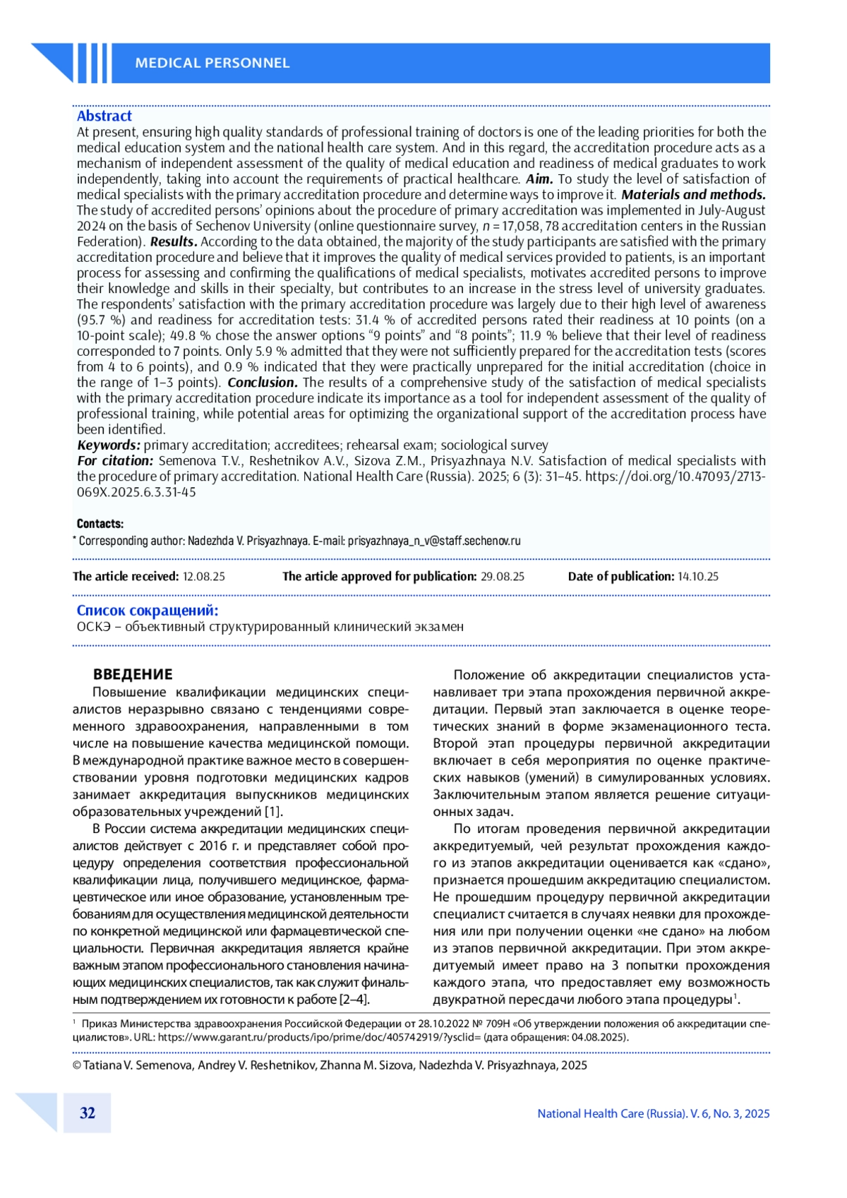 2. Алексеева А.Ю., Балкизов З.З., Перельман В.И и др. Объективный структурированный клинический экзамен как инструмент аккредитации медицинских специалистов. Медицинское образование и профессиональное развитие. 2018; 1(31): 15-53.