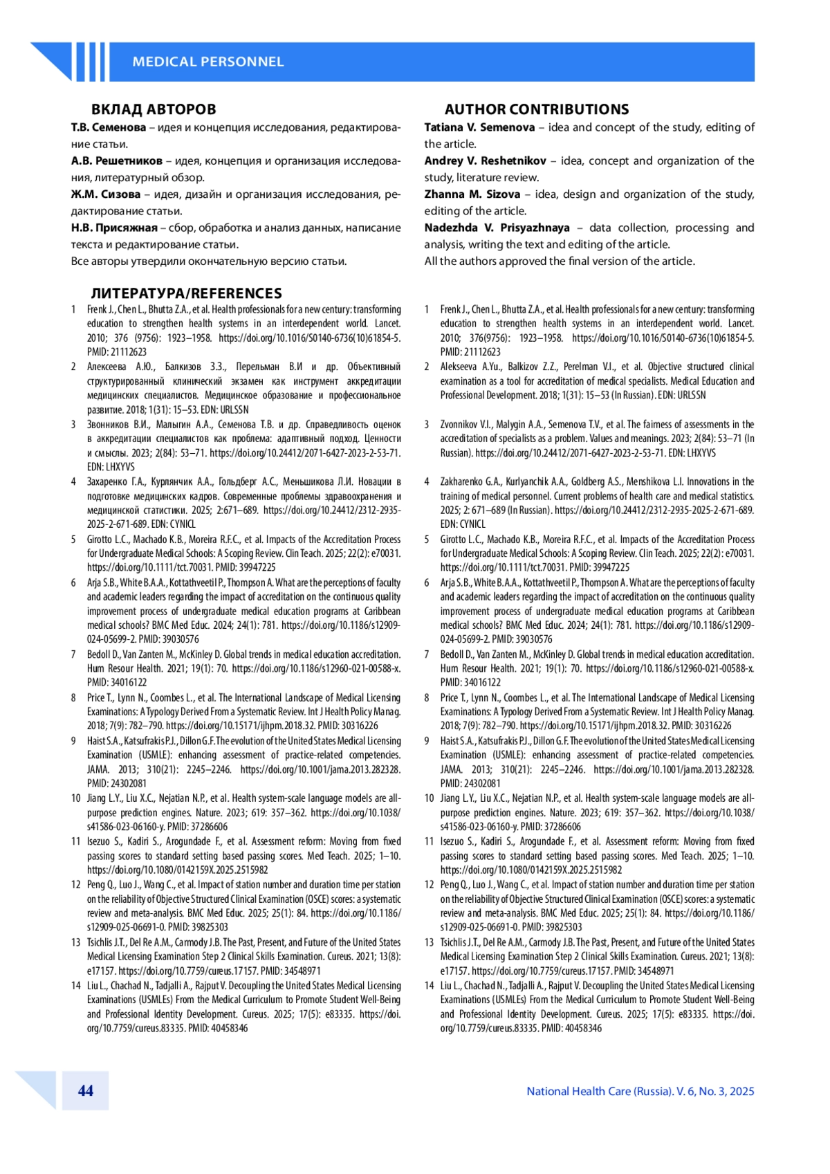 14. Liu L., Chachad N., Tadjalli A., Rajput V. Decoupling the United States Medical Licensing Examinations (USMLEs) From the Medical Curriculum to Promote Student Well-Being and Professional Identity Development. Cureus. 2025; 17(5): e83335. PMID: 40458346. DOI: 10.7759/cureus.83335 EDN: JMJADK PMID: 40458346