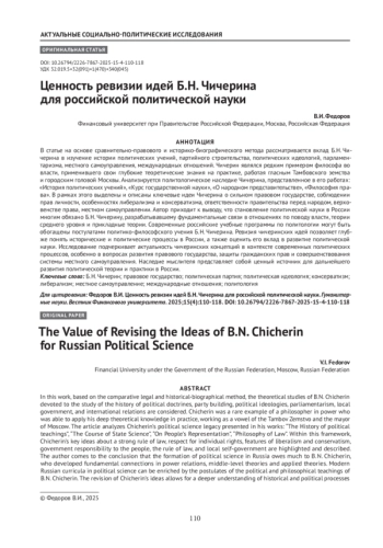 15. Пучнин А. С., Федоров В. И. Б. Н. Чичерин: выдающийся ученый и земский деятель. Избирательное законодательство и практика. 2023;2:26-30. https://doi.org/10.18572/2500-0306-2023-2-26-30