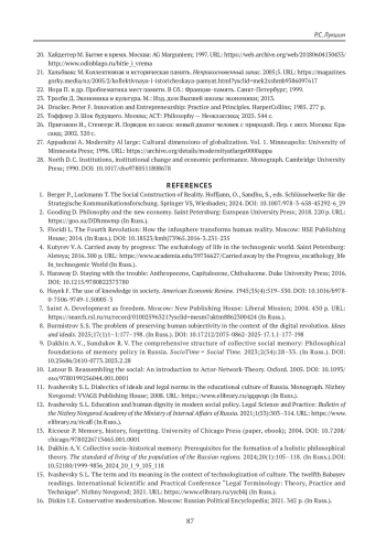 16. Дискин И. Е. Консервативная модернизация. Москва: Российская политическая энциклопедия; 2021. 342 с. 17. Mokyr J. Culture, knowledge and economic growth. Moscow: Gaidar Institute Publishing House; 2016. https://doi.org/10.1007/978-1-4757-3161-3_9