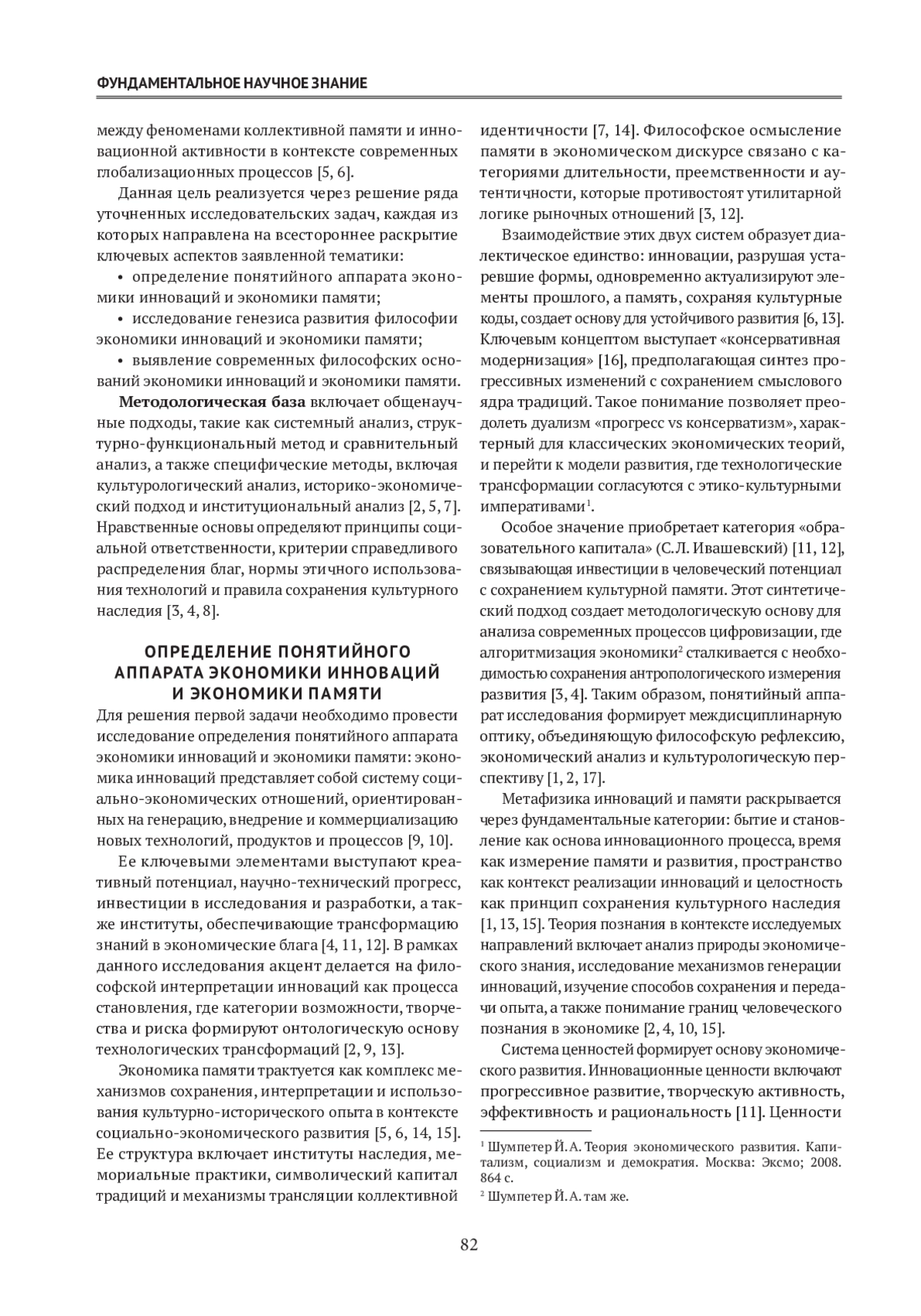 Взаимосвязь инноваций и памяти проявляется в диалектике сохранения и изменения, единстве традиции и новации, взаимодополняемости прошлого и будущего и синтезе опыта и творчества [6, 14, 18]. Познание экономических процессов характеризуется комплексным подходом к изучению явлений, междисциплинарностью исследований, интеграцией различных типов знания и учетом социокультурного контекста [1, 2, 13, 17].