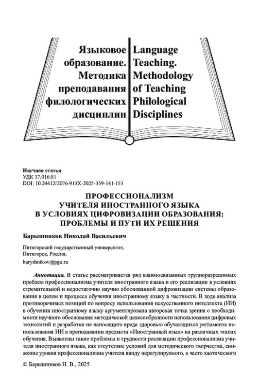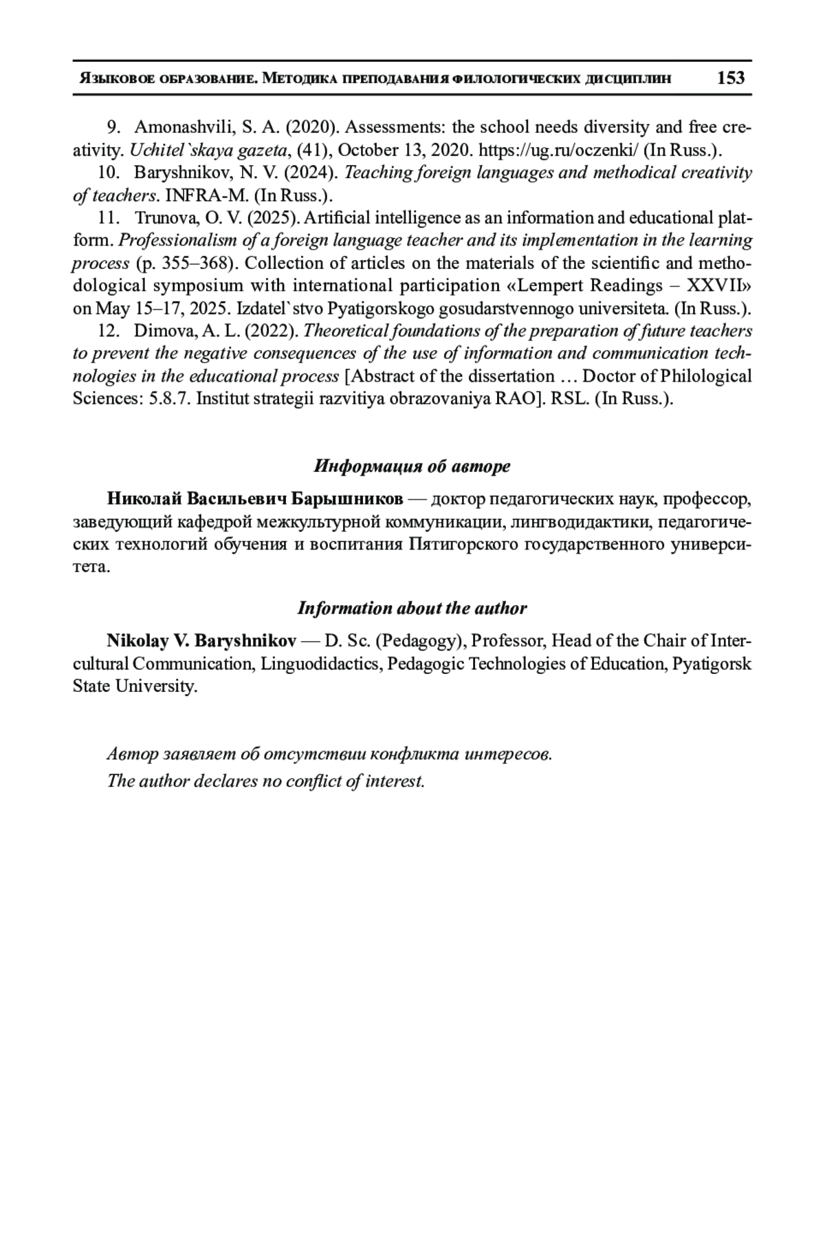 10. Барышников, Н. В. (2024). Обучение иностранным языкам и методическое творчество учителя. ИНФРА-М.