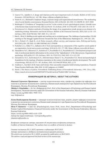 4. Younis R. A.A., Hammad R. (2021) Employer image, corporate image and organizational attractiveness: The moderating role of social identity consciousness. Personnel Review. 2021;1(50);244-263. https://doi.org/10.1108/PR-02-20190058