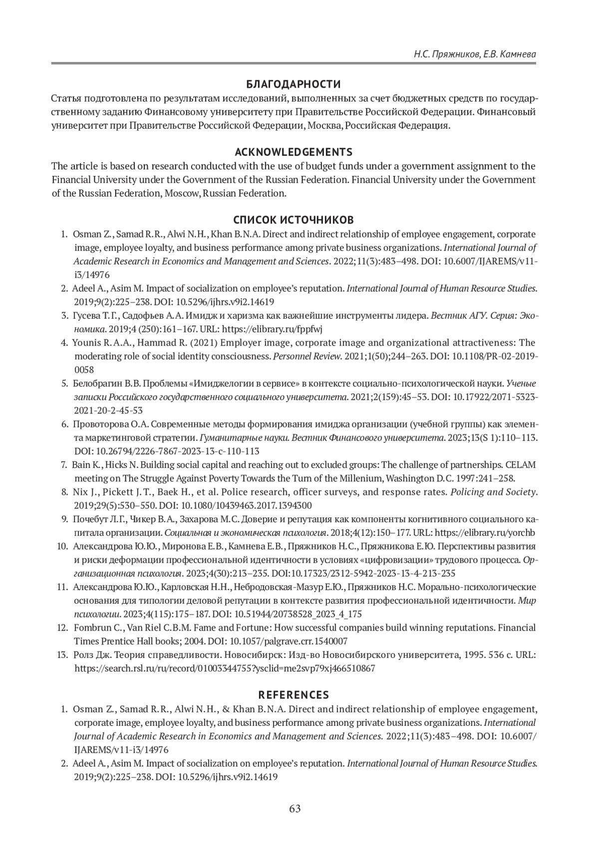 9. Почебут Л. Г., Чикер В. А., Захарова М. С. Доверие и репутация как компоненты когнитивного социального капитала организации. Социальная и экономическая психология. 2018;4(12):150-177. URL: https://elibrary.ru/yorchb