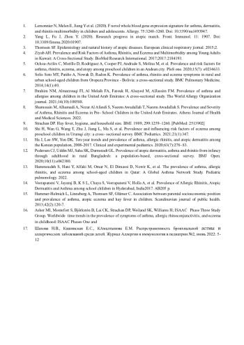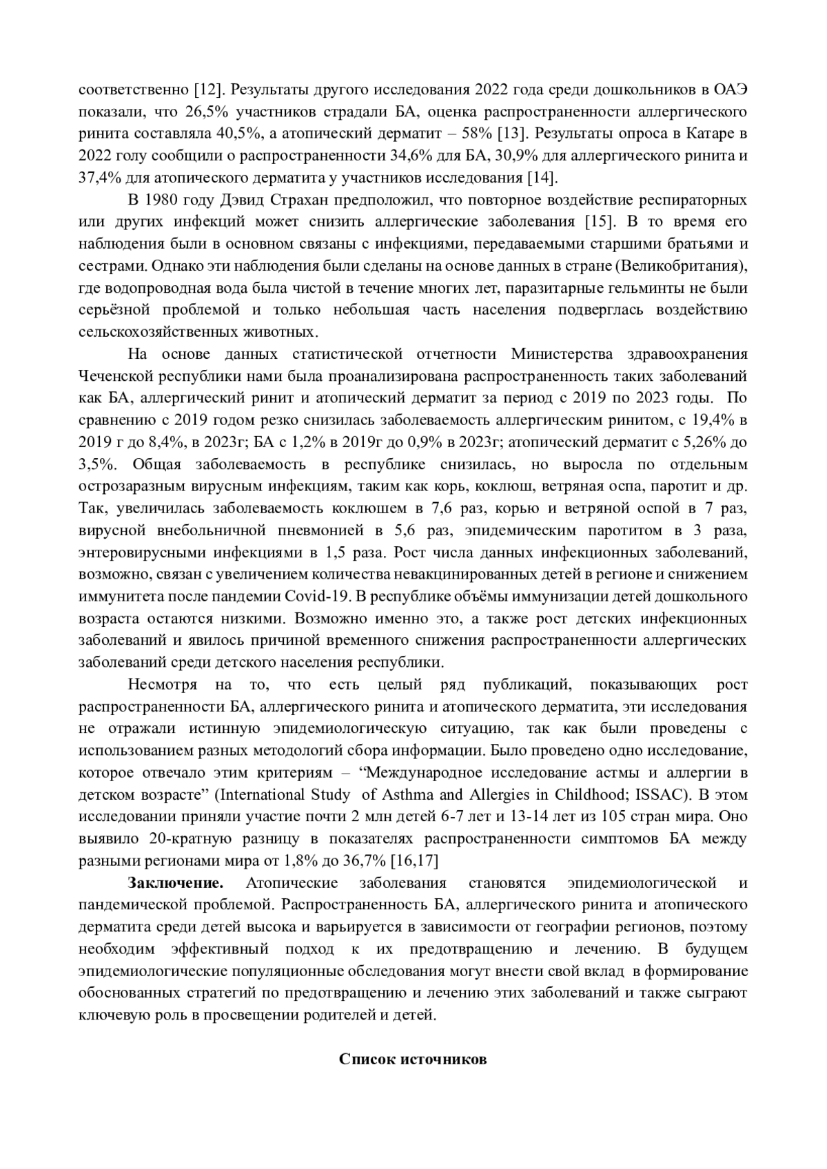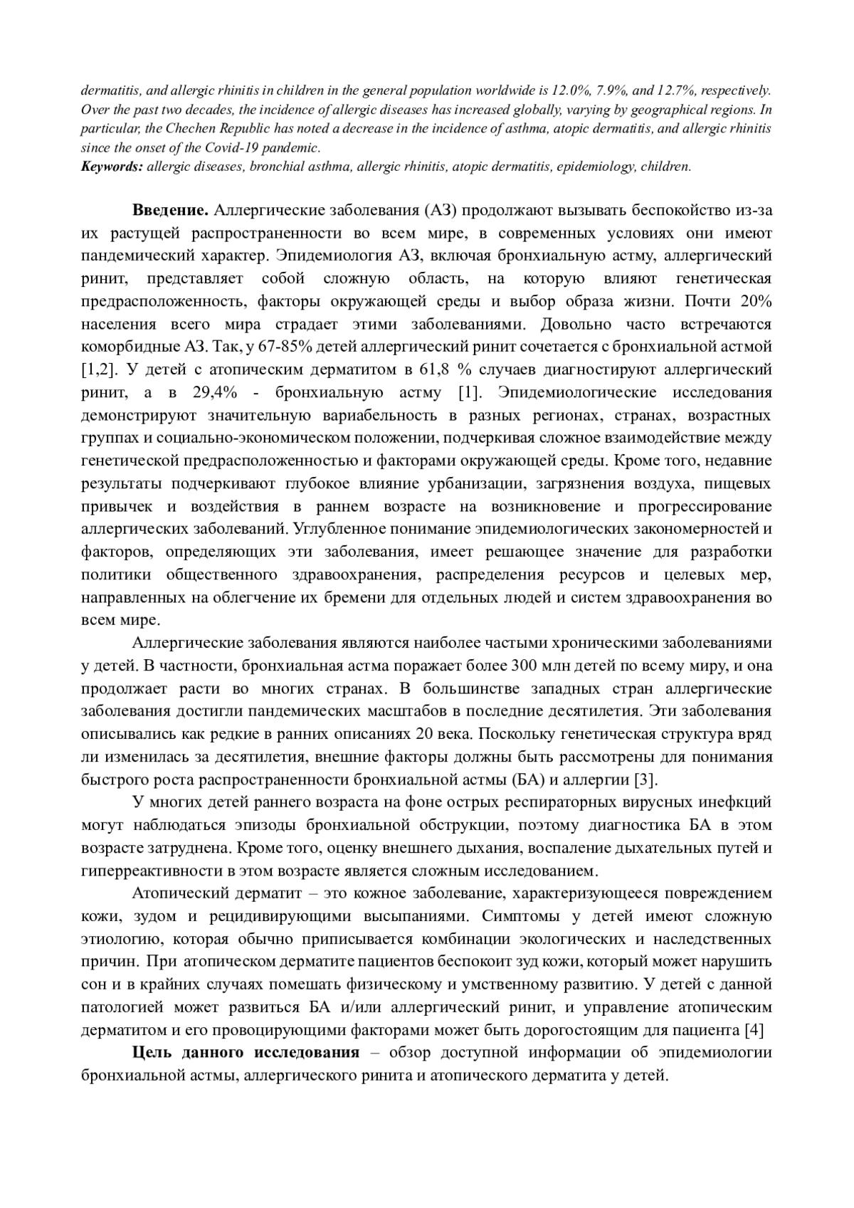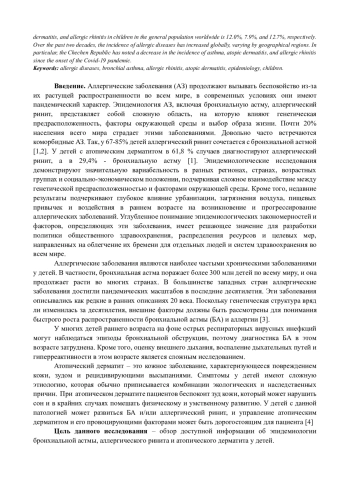 Статья: ЭПИДЕМИОЛОГИЯ АЛЛЕРГИЧЕСКОГО РИНИТА, БРОНХИАЛЬНОЙ АСТМЫ И АТОПИЧЕСКОГО ДЕРМАТИТА У ДЕТЕЙ (2024)