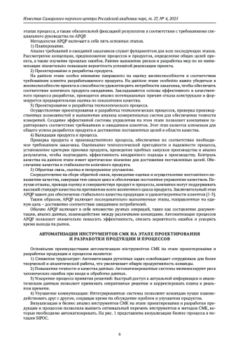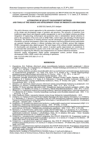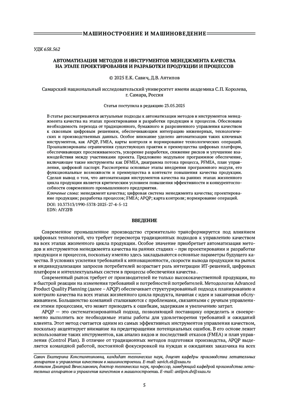 Статья: АВТОМАТИЗАЦИЯ МЕТОДОВ И ИНСТРУМЕНТОВ МЕНЕДЖМЕНТА КАЧЕСТВА НА ЭТАПЕ ПРОЕКТИРОВАНИЯ И РАЗРАБОТКИ ПРОДУКЦИИ И ПРОЦЕССОВ (2025)