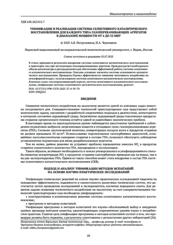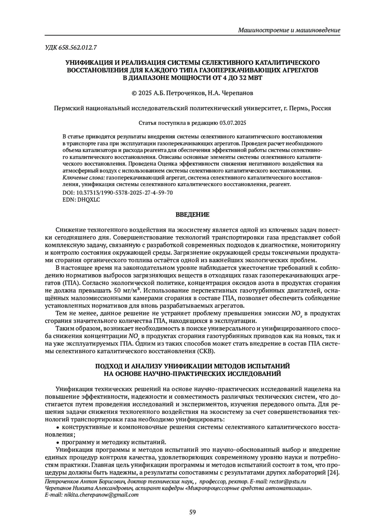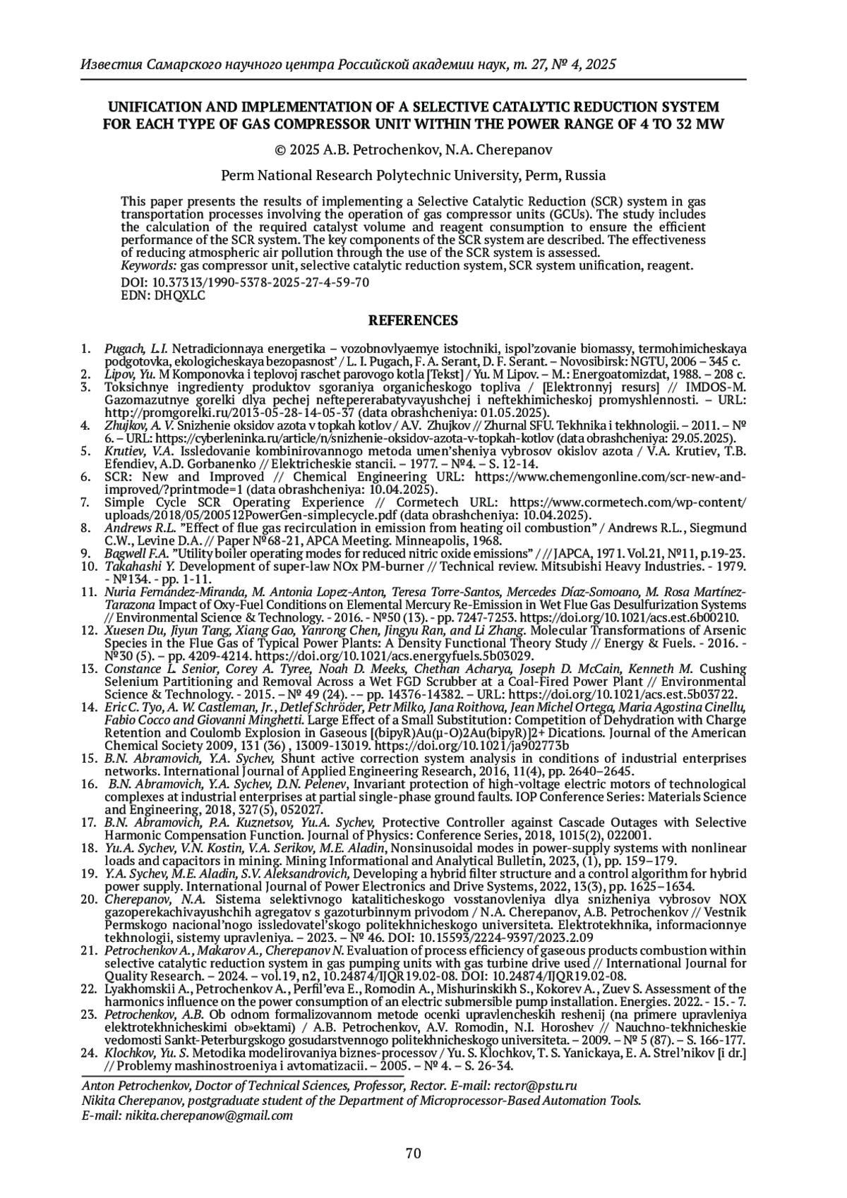 20. Черепанов, Н.А. Система селективного каталитического восстановления для снижения выбросов NOX газоперекачивающих агрегатов с газотурбинным приводом / Н.А. Черепанов, А.Б. Петроченков // Вестник Пермского национального исследовательского политехнического университета. Электротехника, информационные технологии, системы управления. - 2023. - № 46. DOI: 10.15593/2224-9397/2023.2.09