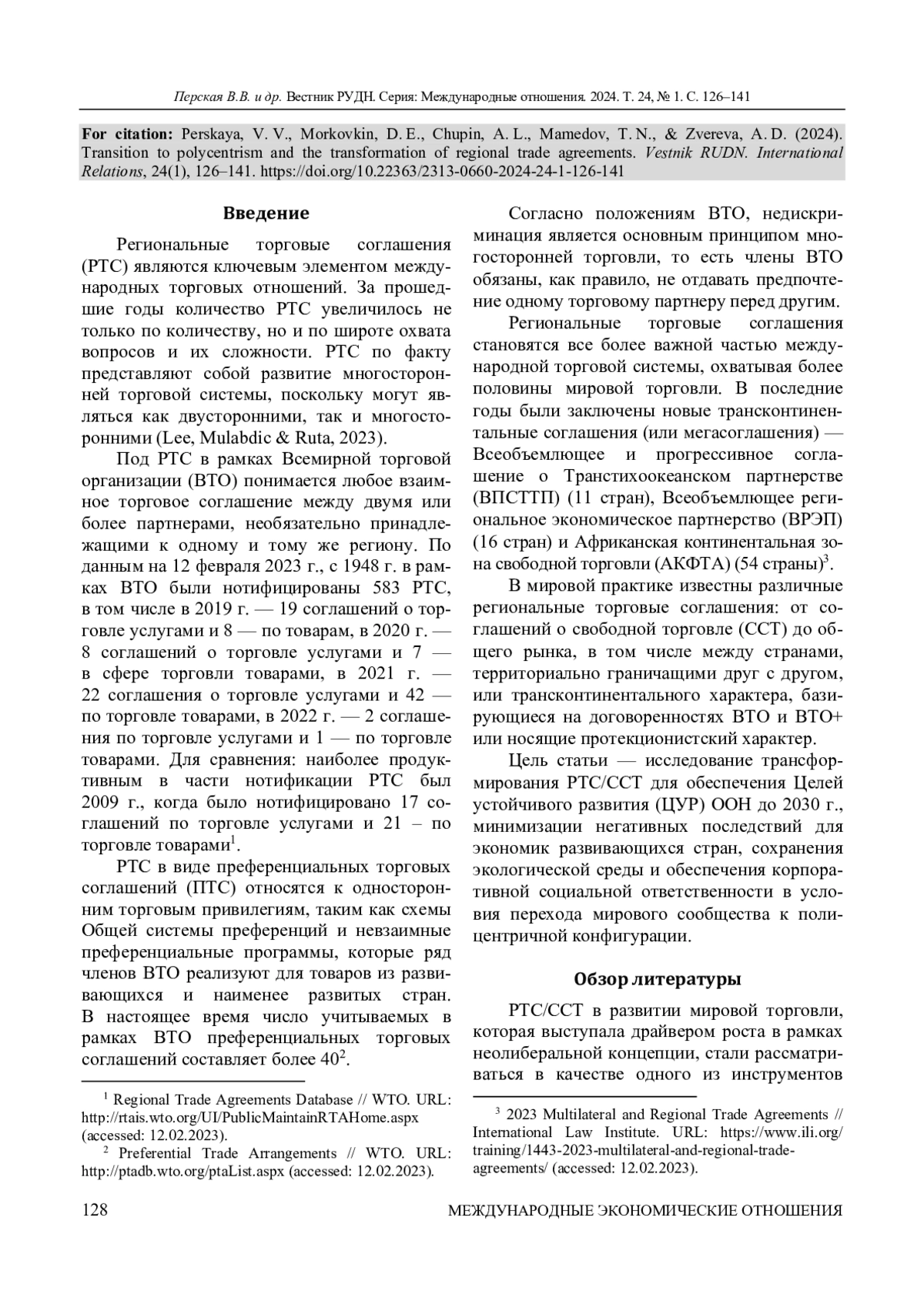 11. Ткаченко А. А. Мегасоглашения о торговле в глобальной экономике // Российский внешнеэкономический вестник. 2023. № 1. С. 26-43. DOI: 10.24412/2072-8042-2023-1-26-43 EDN: SPUOFM