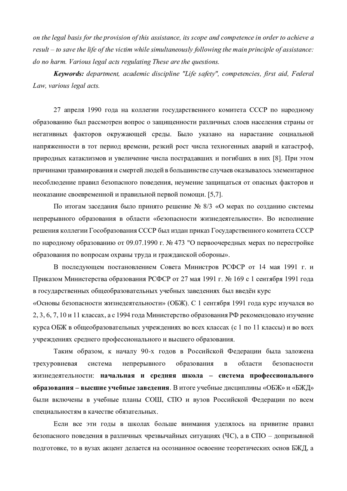 Ключевые фразы: КАФЕДРА, учебная дисциплина "безопасность жизнедеятельности", компетенции, первая доврачебная помощь, фз, различные правовые акты