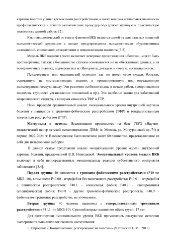 Статья: АНАЛИЗ СУБЪЕКТИВНОГО ВОСПРИЯТИЯ БОЛЕЗНИ ПАЦИЕНТАМИ С ТРЕВОЖНЫМИ РАССТРОЙСТВАМИ (2024)