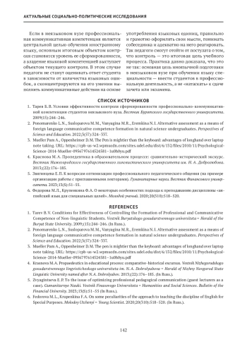 Статья: Лингводидактический контроль сформированности иноязычных компетенций у будущих социологов в ходе обучения языку специальности (2024)