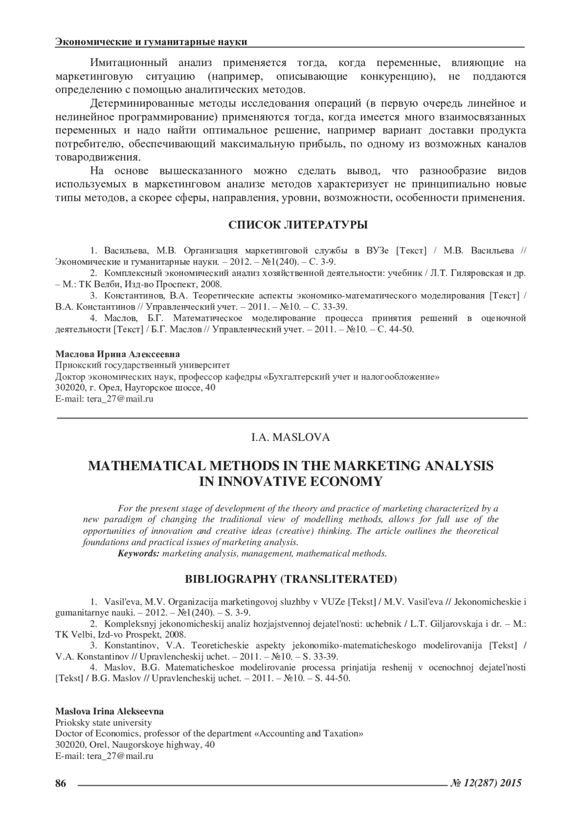 3. Константинов, В.А. Теоретические аспекты экономико-математического моделирования [Текст] / В.А. Константинов // Управленческий учет. - 2011. - №10. - С. 33-39.