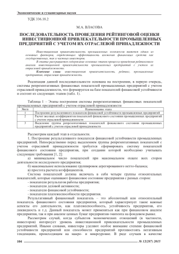 В статье раскрывается содержание основных этапов процесса проведения рейтингового анализа инвестиционной привлекательности промышленных предприятий с учетом их отраслевой принадлежности.