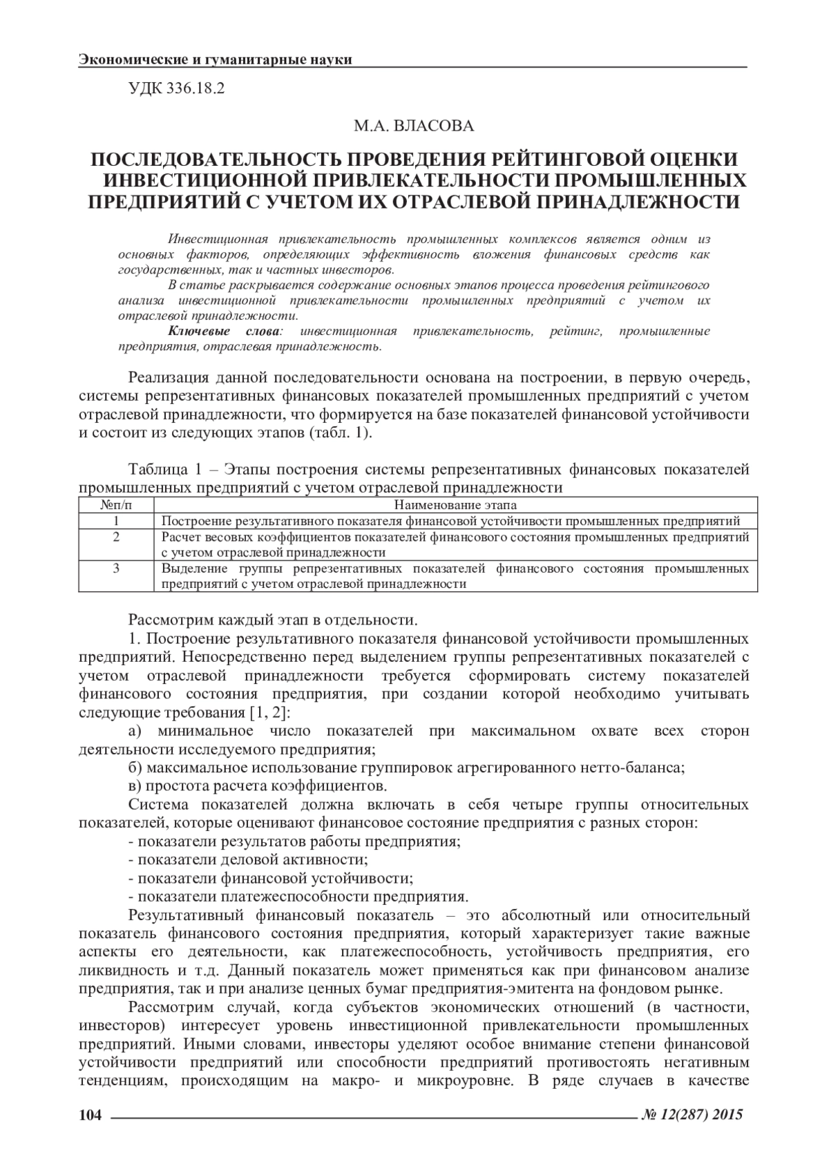 Реализация данной последовательности основана на построении, в первую очередь, системы репрезентативных финансовых показателей промышленных предприятий с учетом отраслевой принадлежности, что формируется на базе показателей финансовой устойчивости и состоит из следующих этапов (табл. 1).