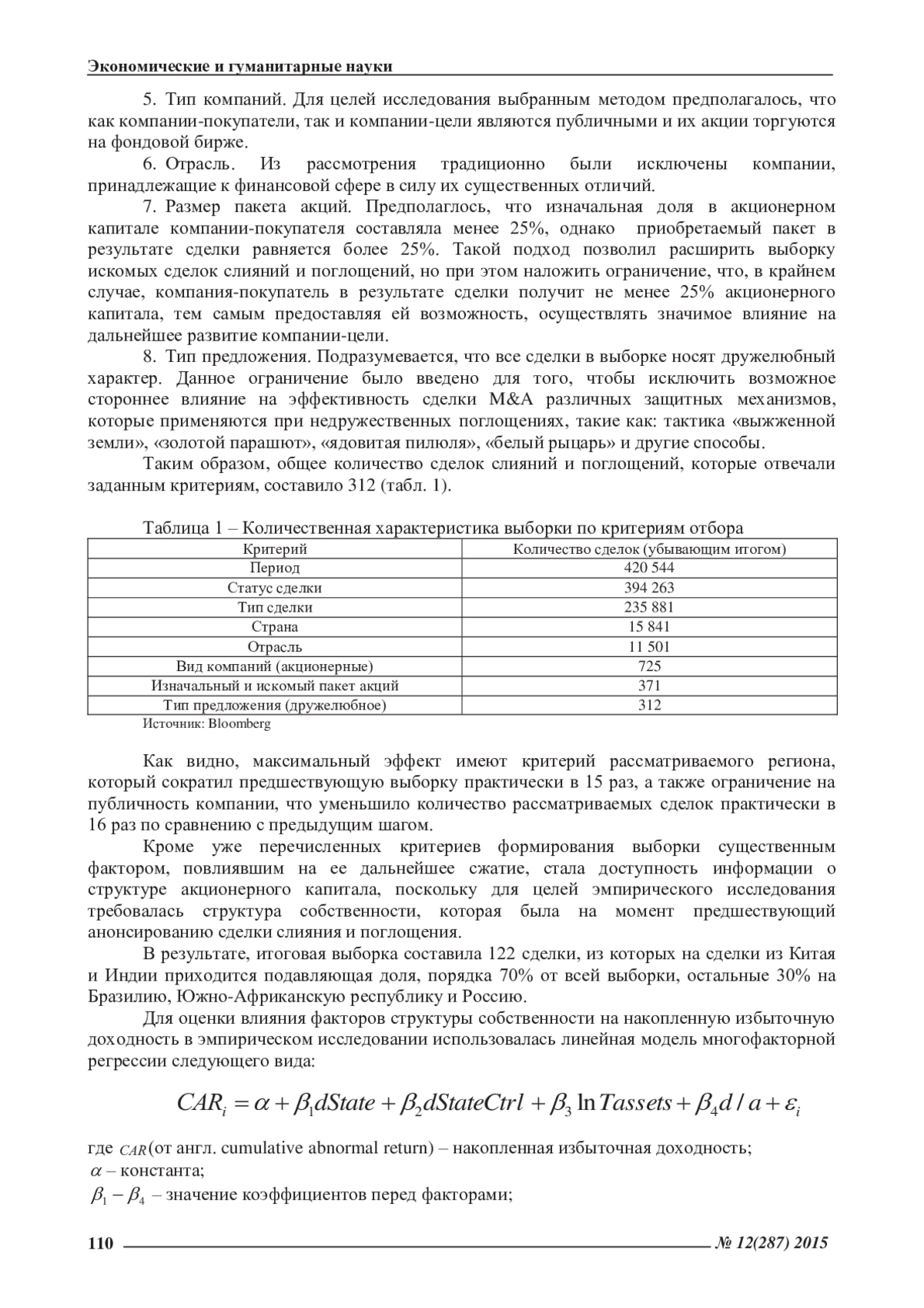 1. Bena, J. Ownership and International Mergers and Acquisitions / J. Bena, K. Li // Journal of Business. - 2013 - №28. - p. 185-200.
