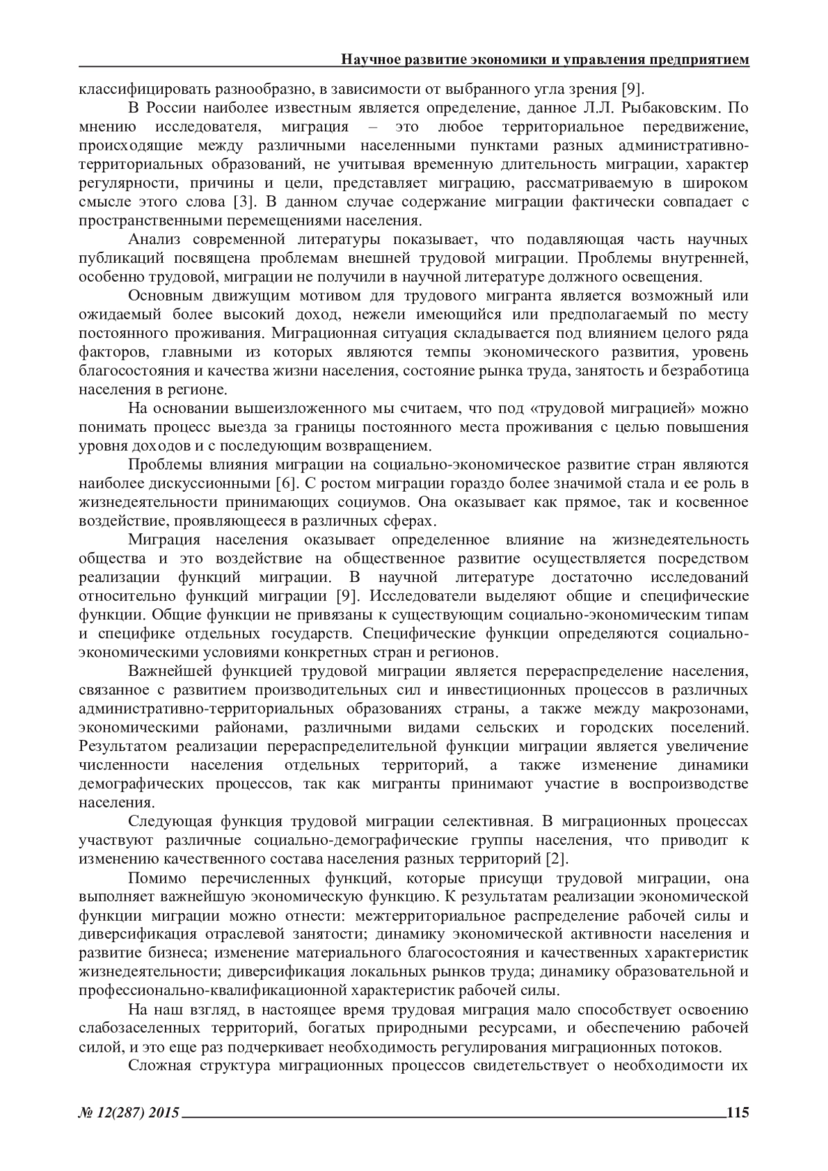 В статье рассмотрены основные понятия внутренней трудовой миграции населения страны, определены функции и последствия внутренней миграции населения. Авторами предложена система показателей внутренней трудовой миграции населения, характеризующая ее объемы, направления, интенсивность и влияние на социально-экономическое развитие российских регионов.