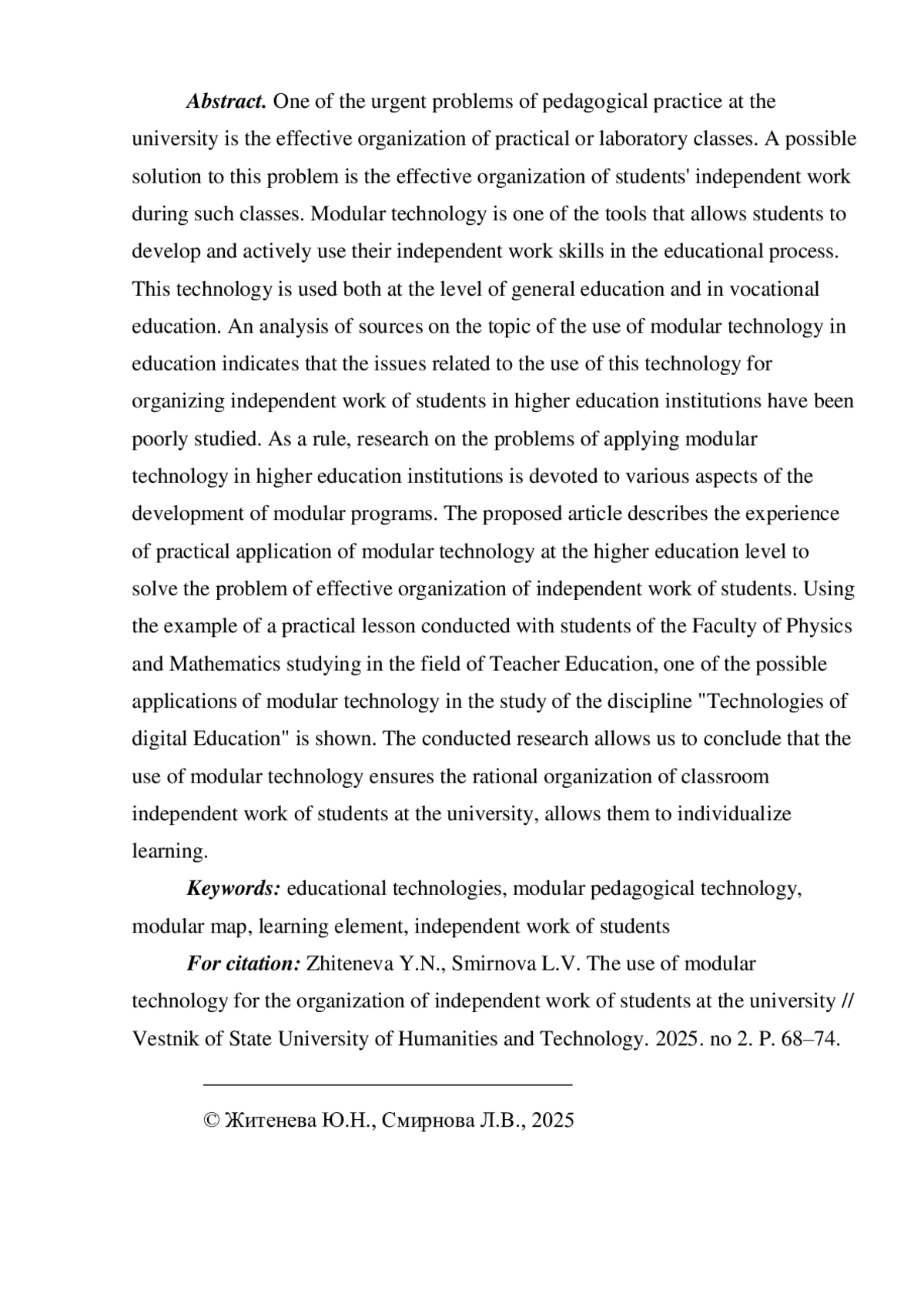 1. Бариленко И.А. Перспективы применения педагогической технологии модульного обучения // Язык и культура. 2022. № 57. С. 157-180.