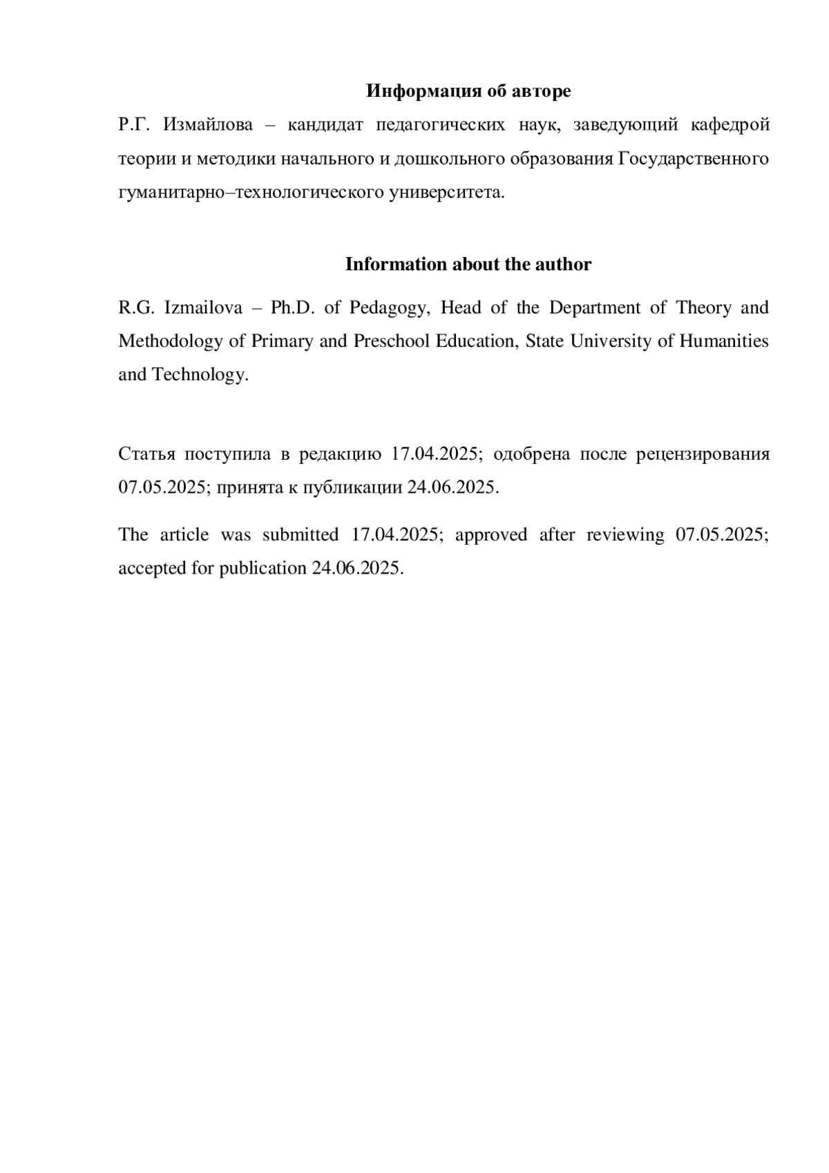 Автор (ы): ИЗМАЙЛОВА РАНИЯ ГЕННАДЬЕВНА