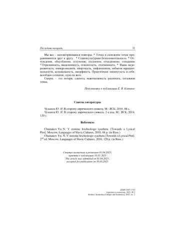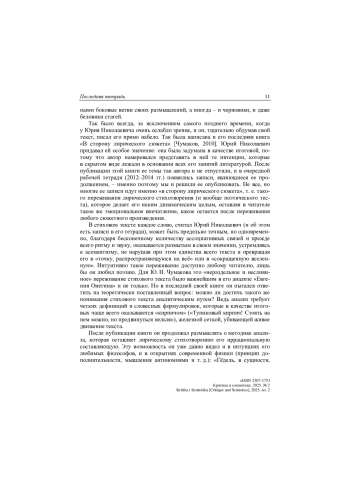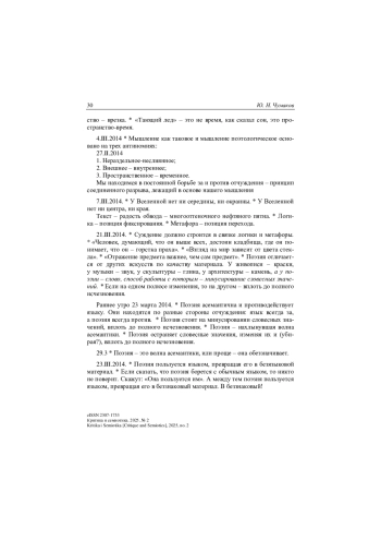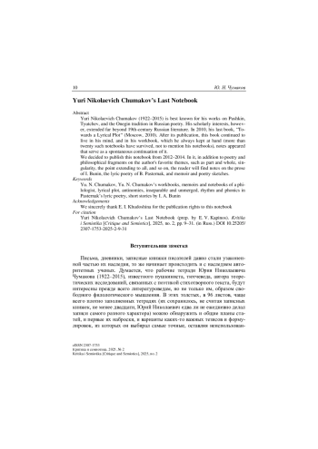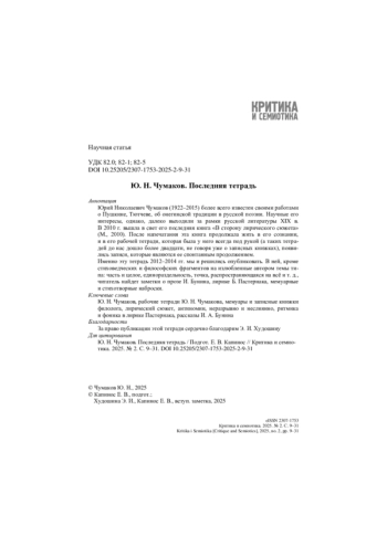 КАПИНОС Е. В. Ю. Н. ЧУМАКОВ. ПОСЛЕДНЯЯ ТЕТРАДЬ // КРИТИКА И СЕМИОТИКА. 2025. № 2