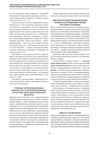 В статье на основе дискурсивного анализа описываются механизмы формирования образа «экзистенционального Другого» при наличии кризиса доверия между Россией и Западом. Анализируются зарубежные, восточные и отечественные подходы к экзистенциализации кризиса в отношениях между РФ и западными странами. В рамках этого выделены и описаны ключевые дискурсивные механизмы: надуманности, конструирования нарративных миров, введения в политическую, социокультурную и экономическую повестку «темных интенсиональных контекстов», а также механизм, направляющий дискурс в русло мифологик. Предложенный подход может быть использован в исследованиях экзистенциализации современного мирового кризиса.