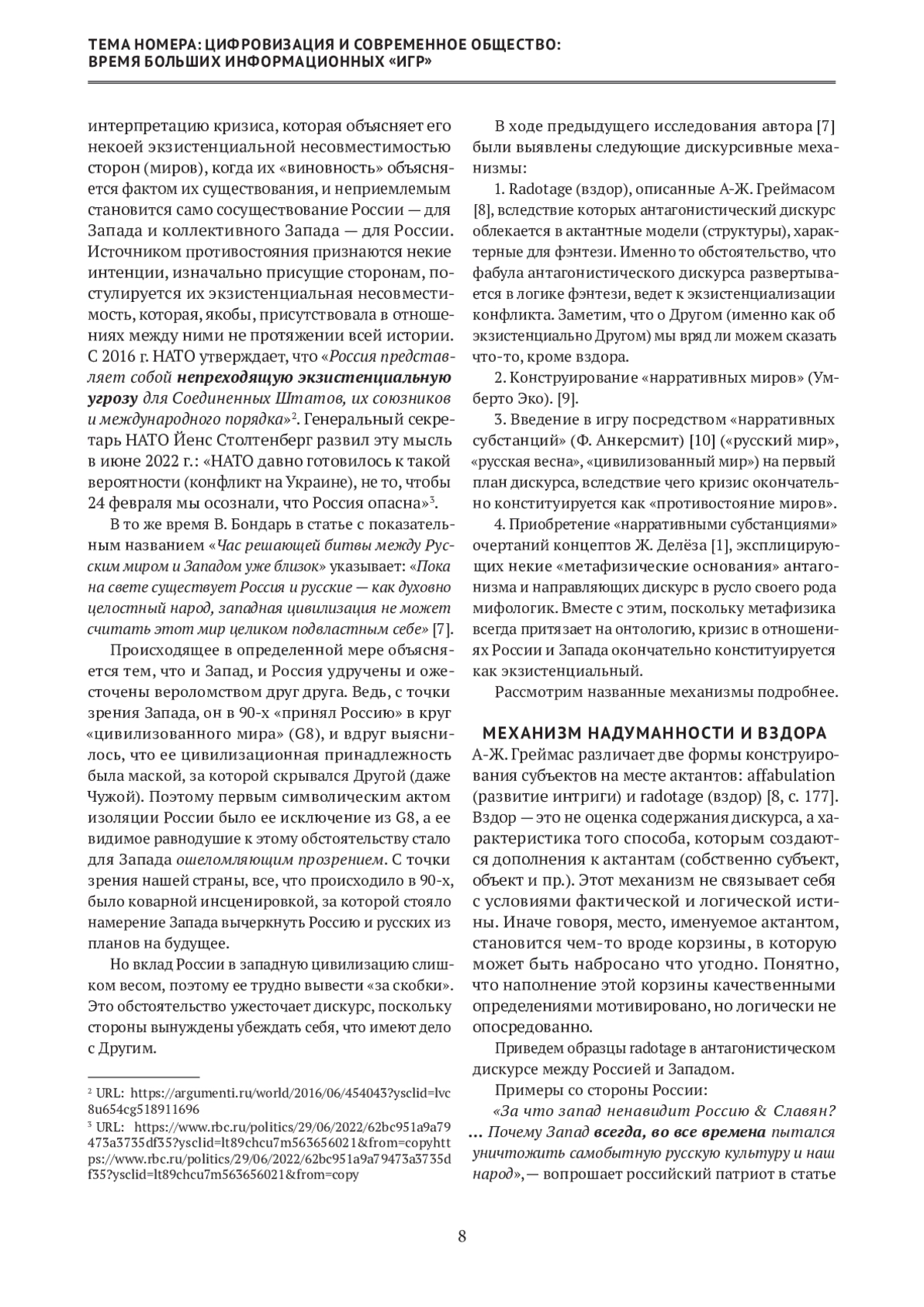 7. Бондарь В. Час решающей битвы между Русским миром и Западом уже близок. URL: http://kolokolrussia.ru/geopolitika/chas-reshauschey-bitv-mejdu-russkim-mirom-i-zapadom-uje-blizok#hcq=zpg9eVq