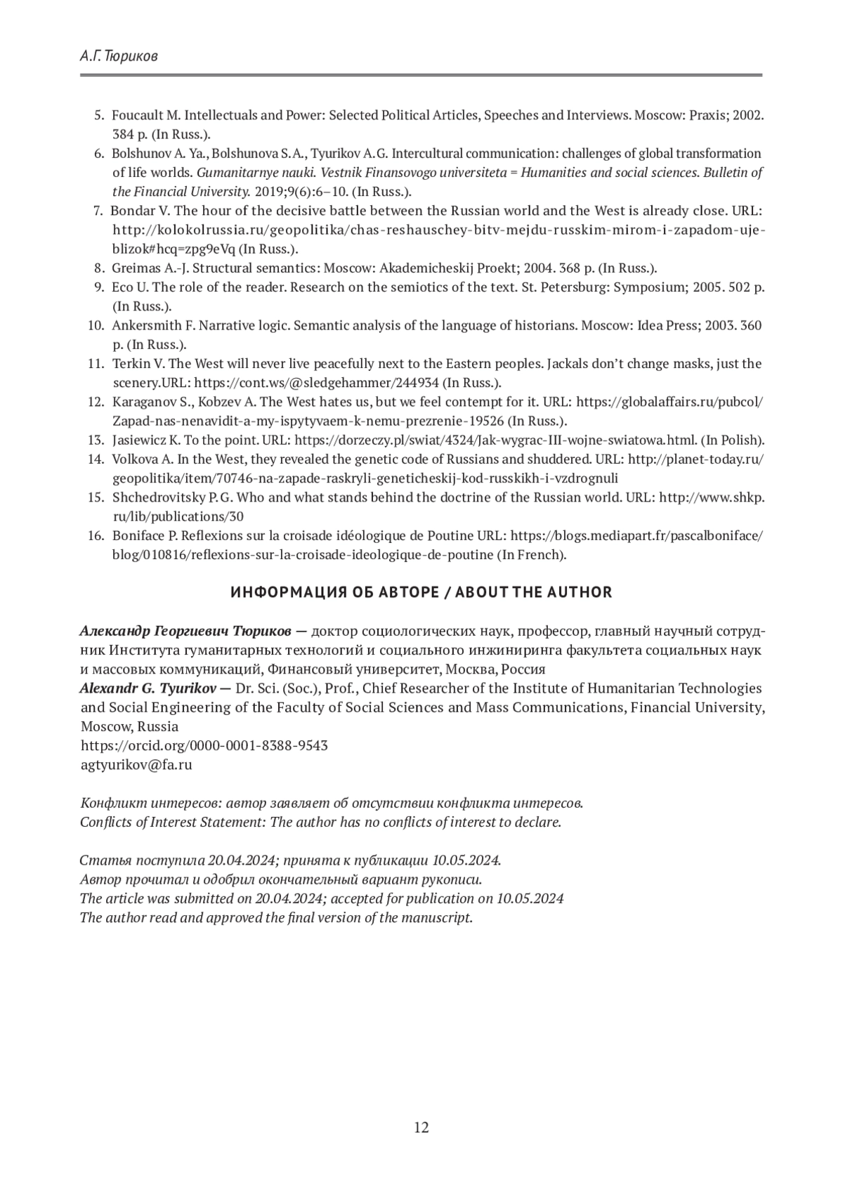 12. Караганов С., Кобзев А. Запад нас ненавидит, а мы испытываем к нему презрение. URL: https://globalaffairs.ru/pubcol/Zapad-nas-nenavidit-a-my-ispytyvaem-k-nemu-prezrenie-19526