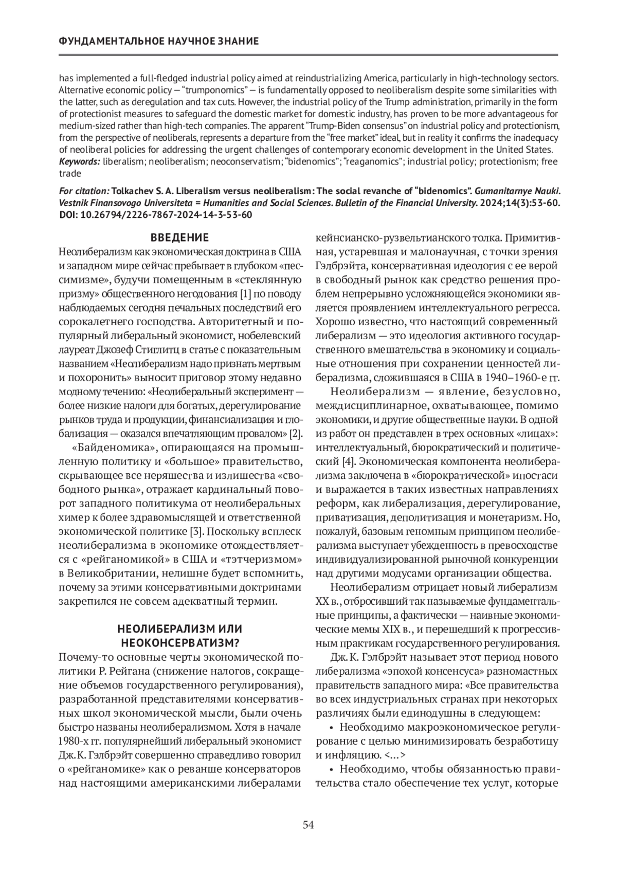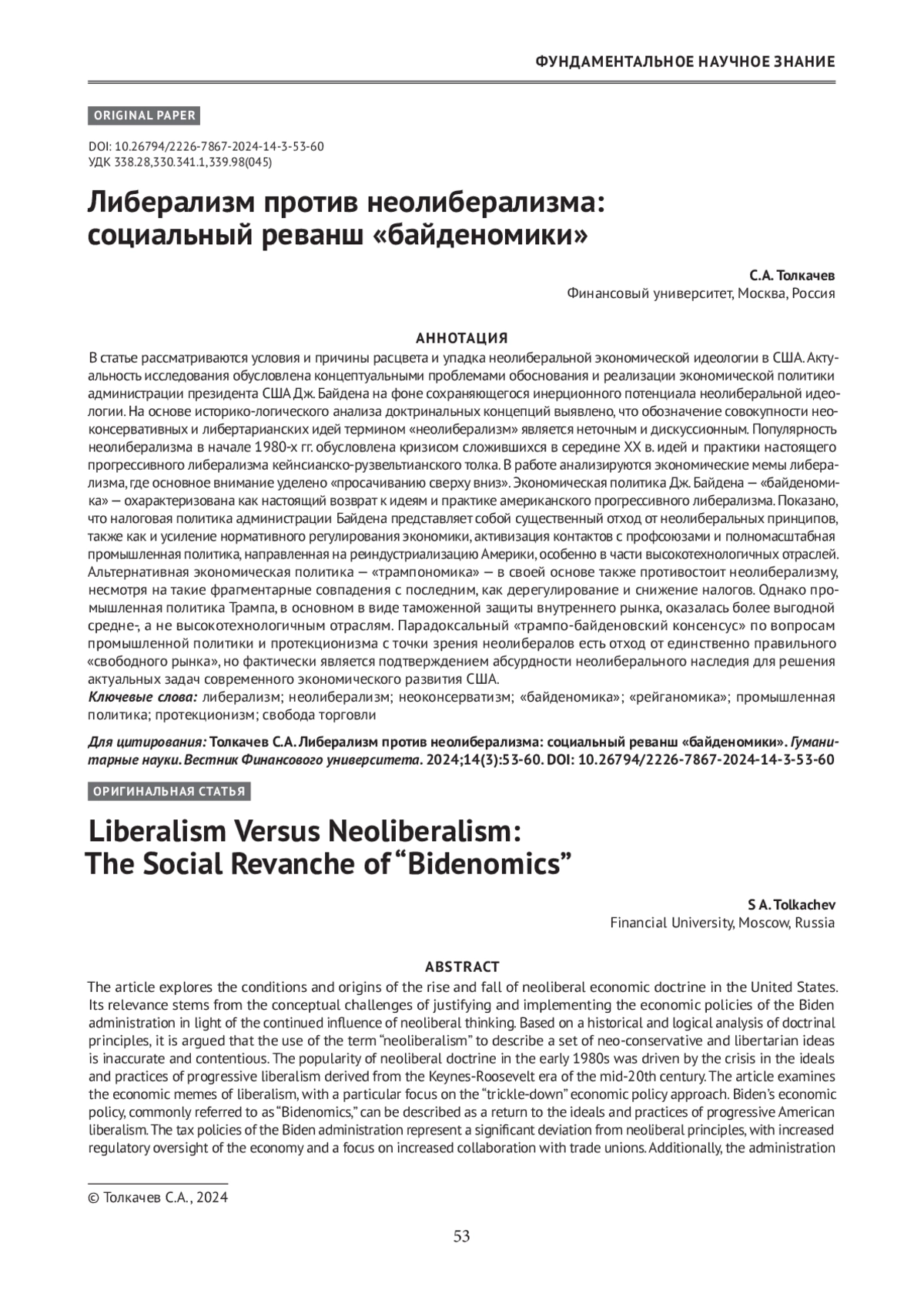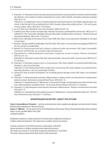 13. Толкачев С. А. Противоречия политической экономии «байденомики». Вопросы политической экономии. 2023;(4);55-75.