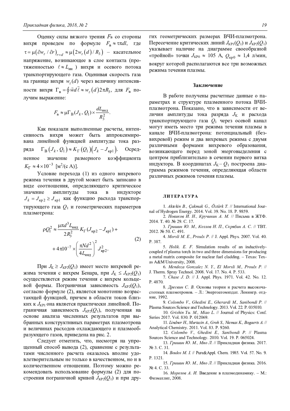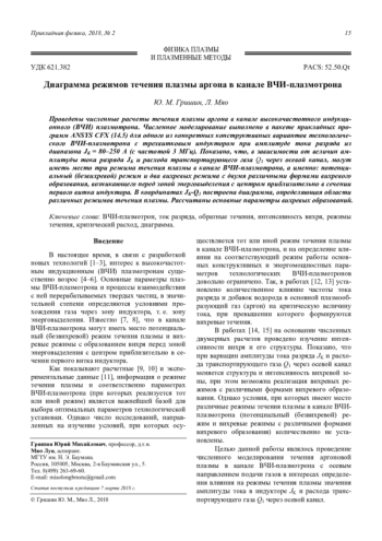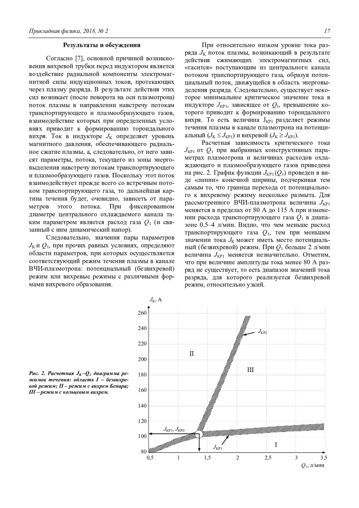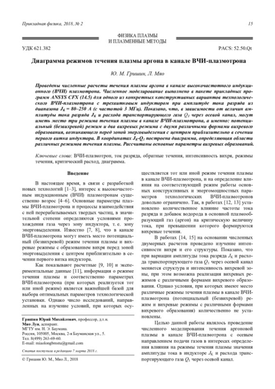 ГРИШИН Ю. М., МЯО Л. ДИАГРАММА РЕЖИМОВ ТЕЧЕНИЯ ПЛАЗМЫ АРГОНА В КАНАЛЕ ВЧИ-ПЛАЗМОТРОНА // ПРИКЛАДНАЯ ФИЗИКА. 2018. №2