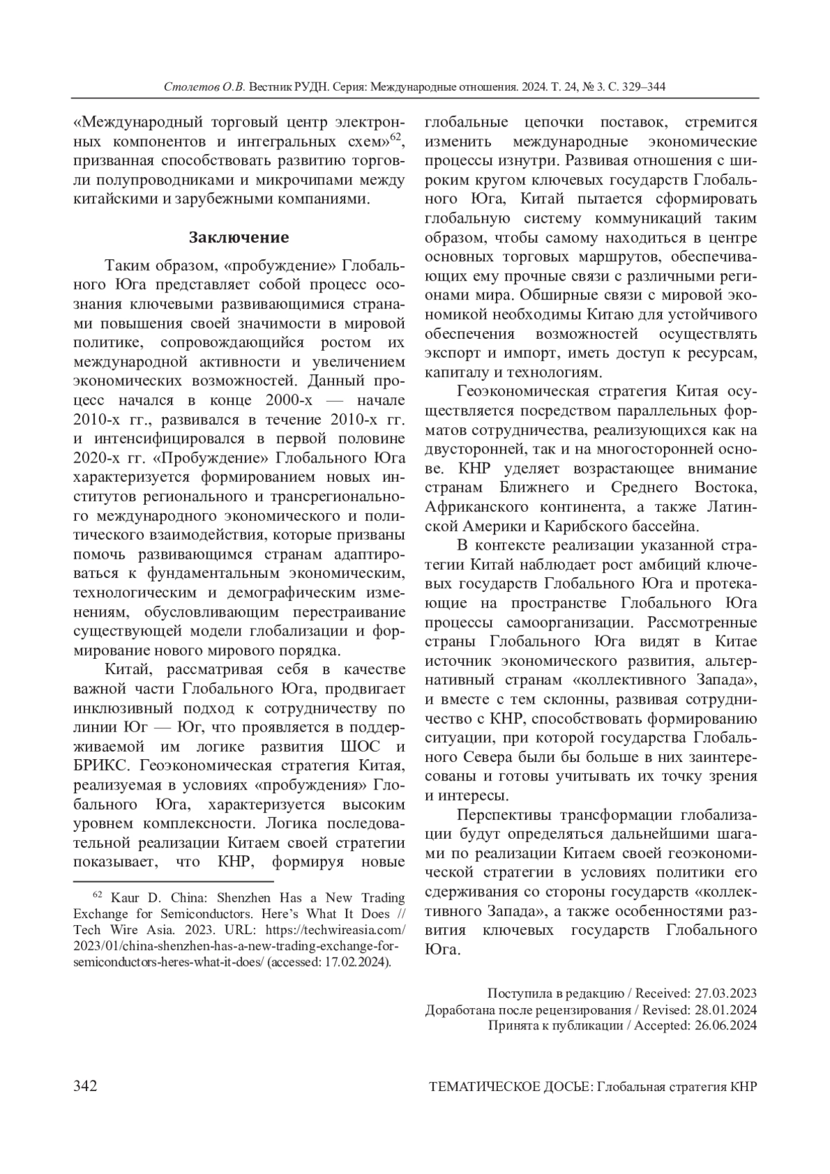 7. Столетов О. В. Стратегии цифрового развития ключевых государств “Глобального Юга” в условиях американо-китайского технологического соперничества // Вестник Российского университета дружбы народов. Серия: Международные отношения. 2022. Т. 22, № 2. С. 221-237. ;. DOI: 10.22363/2313-0660-2022-22-2-221-237 EDN: SYEGYC