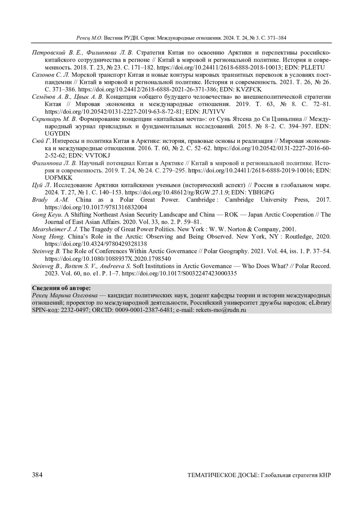 10. Петровский В. Е., Филиппова Л. В. Россия и Китай в Арктике. Москва: Весь мир, 2022. EDN: RNWAZL