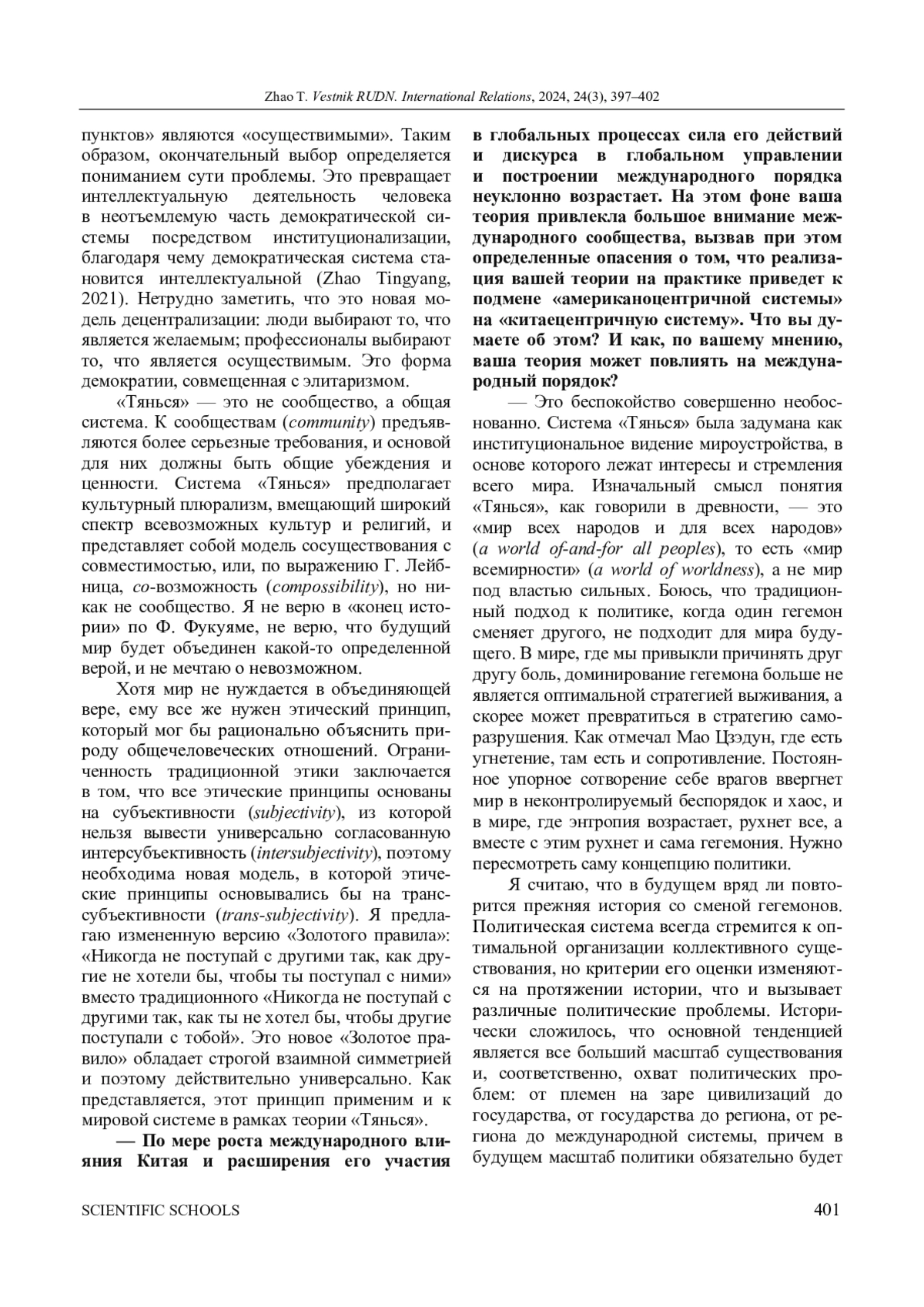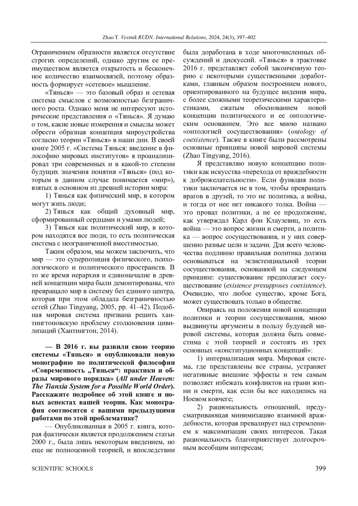 2. Zhao Tingyang. Cong guo jiaguo ji dao shi jie: san zhong zheng zhi wen ti de bian hua // Zhe xue yan jiu [От национального к международному и мировому: три варианта политического вопроса // Философские исследования]. 2009. No. 1. P. 89-95. (На китайском языке).