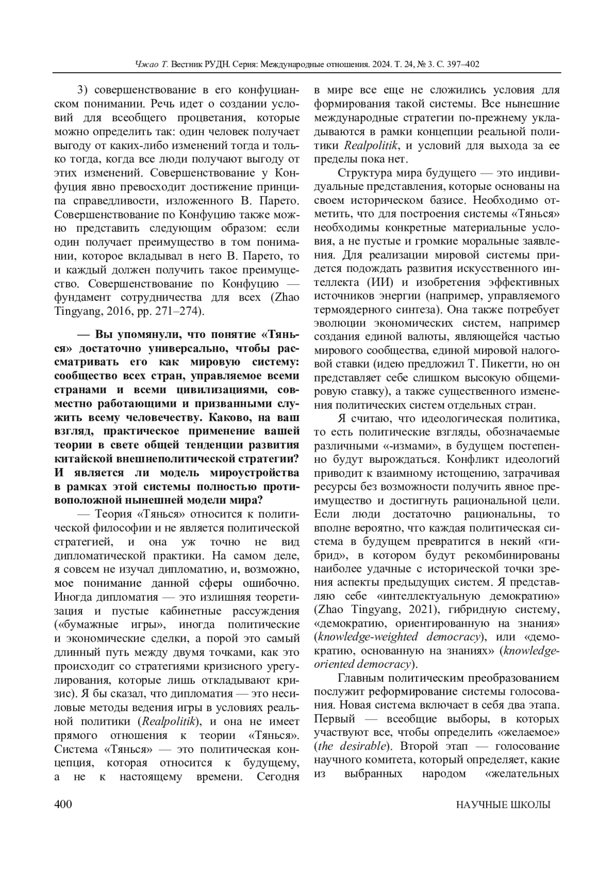 5. Zhao Tingyang. Yi zhong ke neng de zhi hui min zhu // Zhong guo she hui ke xue [Возможная интеллектуальная демократия // Китайская социальная наука]. 2021. No. 4. P. 4-23. (На китайском языке).