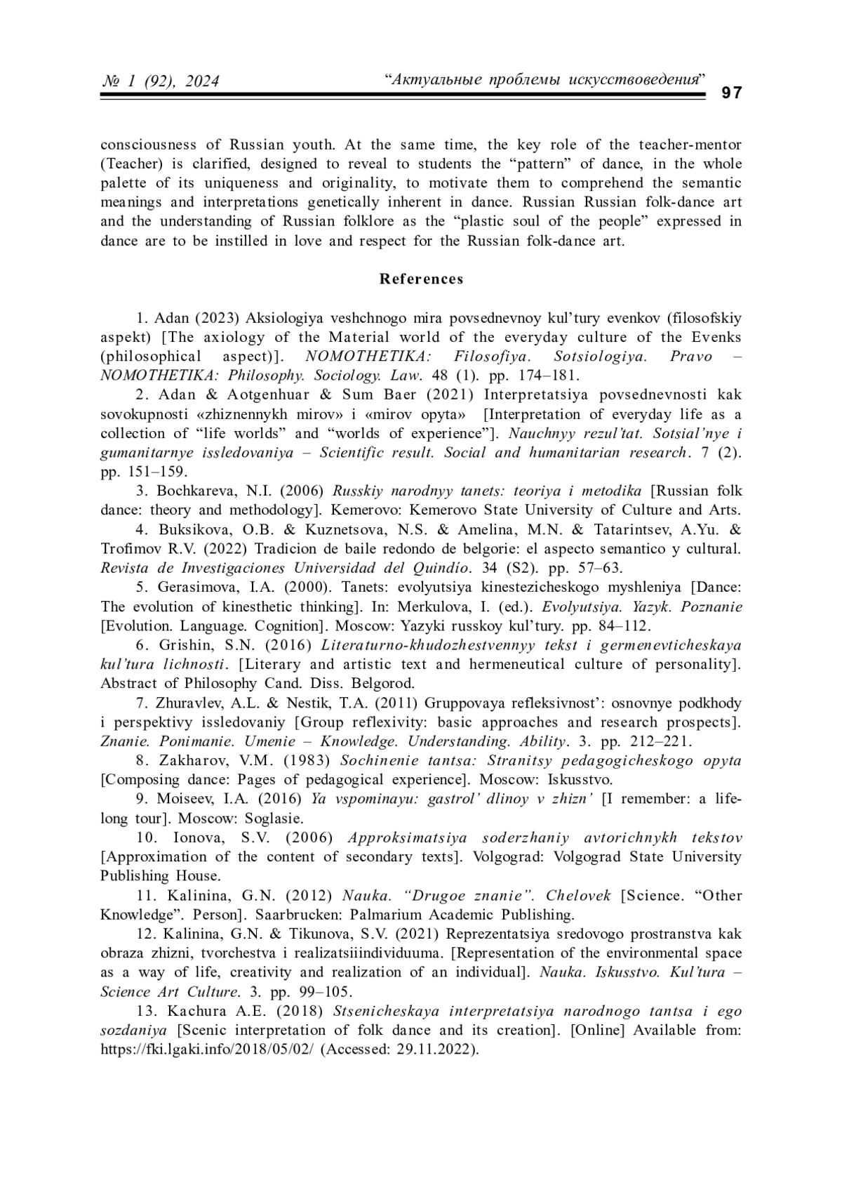 Статья: ЭСТЕТИЧЕСКАЯ ПАРАДИГМА "ВОСПИТАНИЯ ТАНЦЕМ" В ДИСКУРСЕ АКСИОЛОГИИ ТРАДИЦИОННОЙ ХОРЕОГРАФИЧЕСКОЙ КУЛЬТУРЫ (2024)