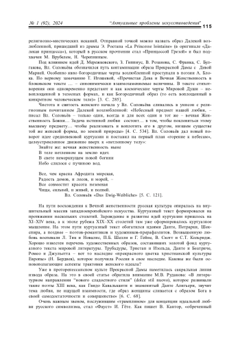 2. Мазина Е.И. Тема Вечной Женственности в культурном пространстве Серебряного века: автореф. дис.. канд. культурологии. М., 2009. 29 с. EDN: NLDXNV