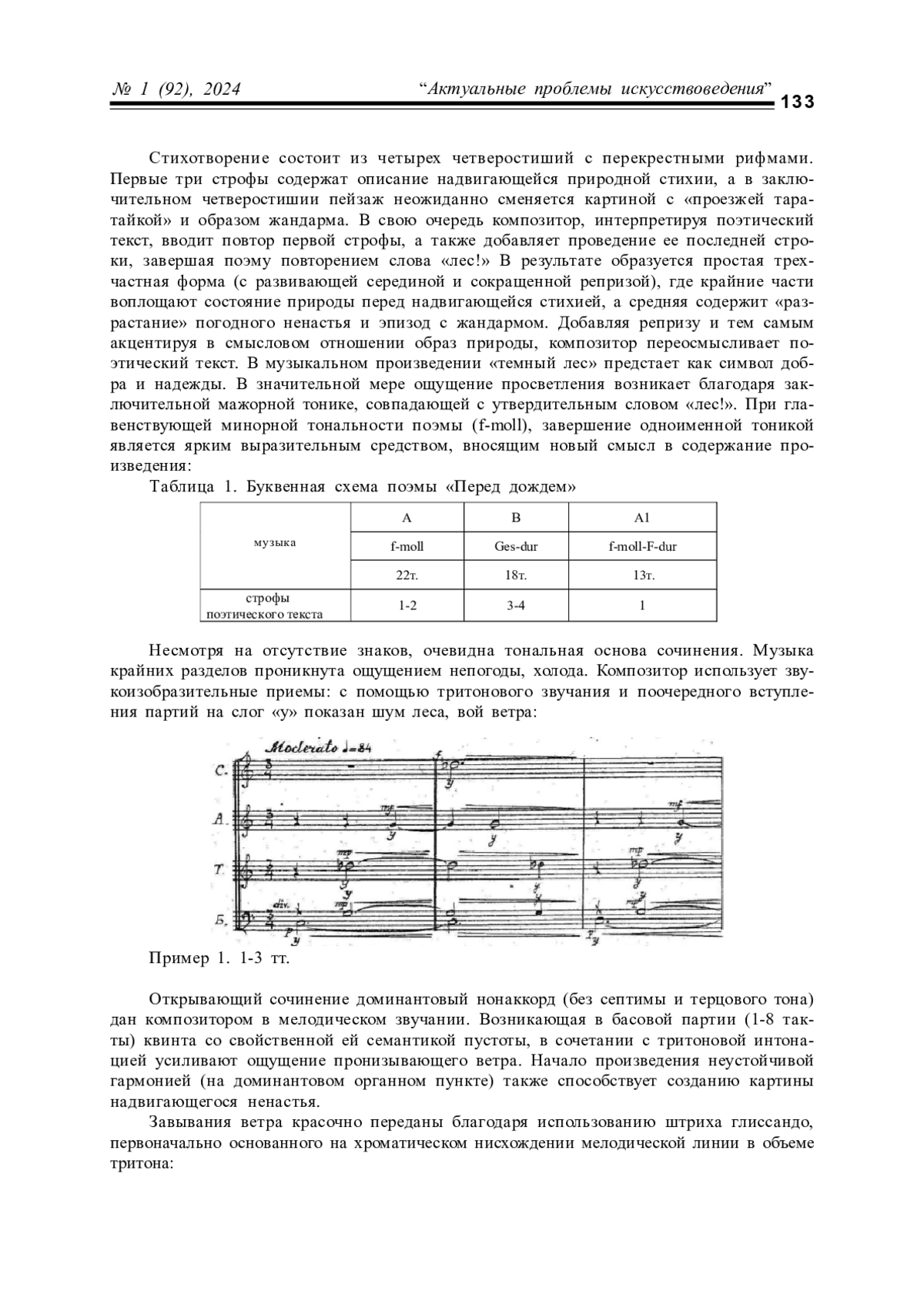Статья посвящена исследованию отдельных аспектов художественной конц епции первой в истории хоровой музыки Китая оратории «Песня вечного сожаления», созданной композитором Хуан Цзы на стихи поэта Вэй Ханьчжана в 1932 году по поэме «Вечная печаль» классика национальной поэзии Бо-Цзюйи. В ид ейно-философском замысле оратории автор отмечает роль национальнопатриотической идеи, обусловленной событиями китайско-японского конфликта начала 1930-х годов. В музыкальной драматургии оратории отмечены многоплановость, яркие контрасты, наличие драматической, лирической, жанровой сфер; значимость пейзажного начала, картинности. Особо акцентирована оригинальная трактовка синтеза музыки и поэтического слова, преломляющая особенности национальных культурных традиций