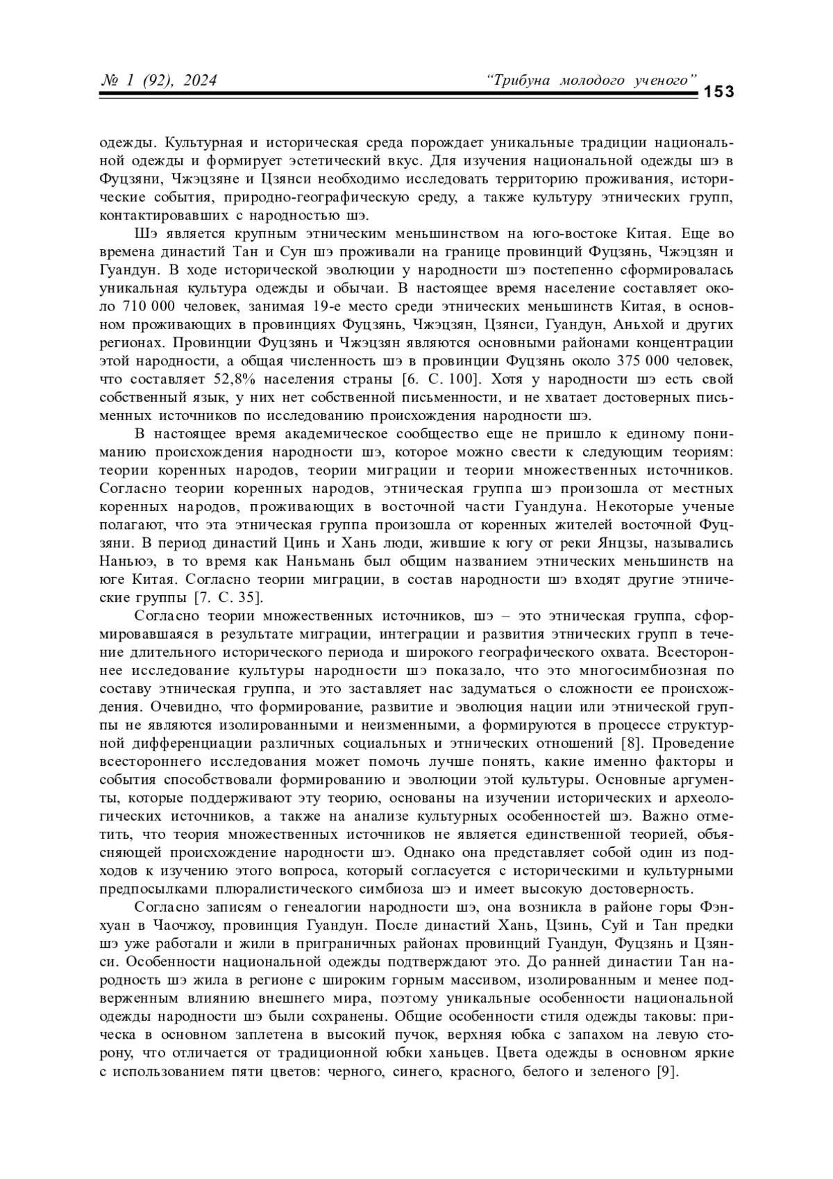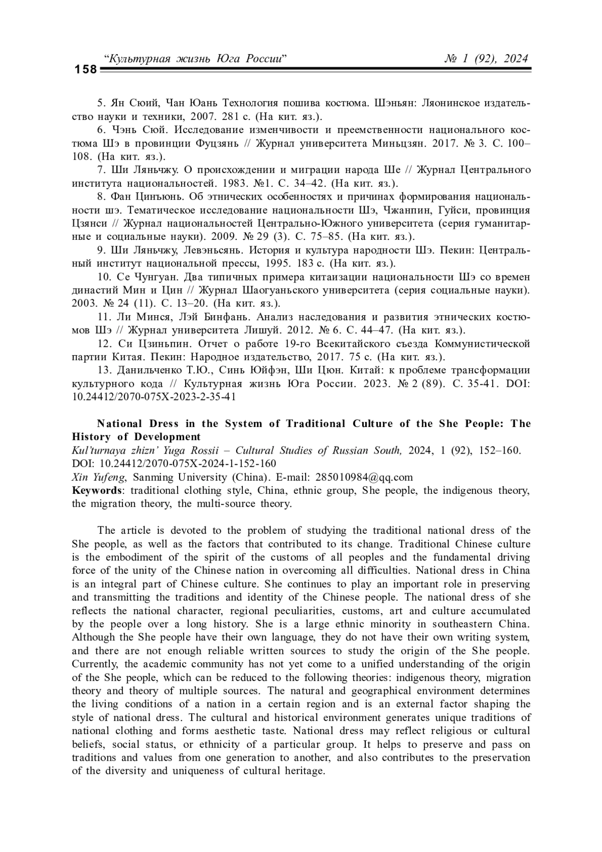 СИНЬ Ю. НАЦИОНАЛЬНАЯ ОДЕЖДА В СИСТЕМЕ ТРАДИЦИОННОЙ КУЛЬТУРЫ НАРОДНОСТИ ШЭ: ИСТОРИЯ РАЗВИТИЯ // КУЛЬТУРНАЯ ЖИЗНЬ ЮГА РОССИИ. 2024. № 1 (92)
