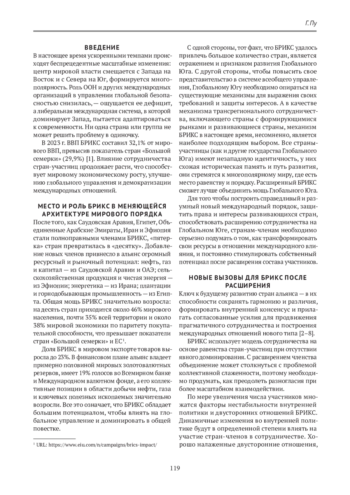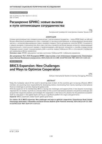 8. Yang N., Wang X. Feasibility Analysis of the BRICS Mechanism to Promote the Development of the “Global South”. URL: https://www.ncpssd.cn/Literature/articleinfo?id=DBYLT2024004007&synUpdateType=&type=journalArticle&nav=1&langType=1 (In Chinese).