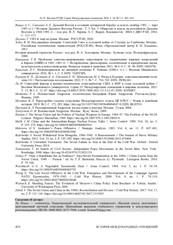 26. Zubok V. The Soviet Union and China in the 1980s: Reconciliation and Divorce // Cold War History. 2017. Vol. 17, no. 2. P. 121-141. DOI: 10.1080/14682745.2017.1315923