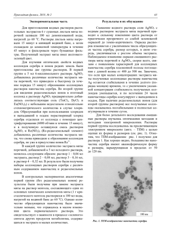 S. I. Rasmagin, L. A. Apresyan, V. I. Kryshtob, and V. I. Krasovskii Preparation of silver nanoparticles by the “green” synthesis method in the presence of rare-earth ions 64