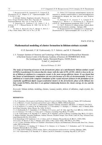 7. Воскресенский В. М., Стародуб О. Р., Сидоров Н. В., Палатников М. Н., Маврин Б. Н. // Кристаллография. 2011. Т. 56. № 2. С. 246.