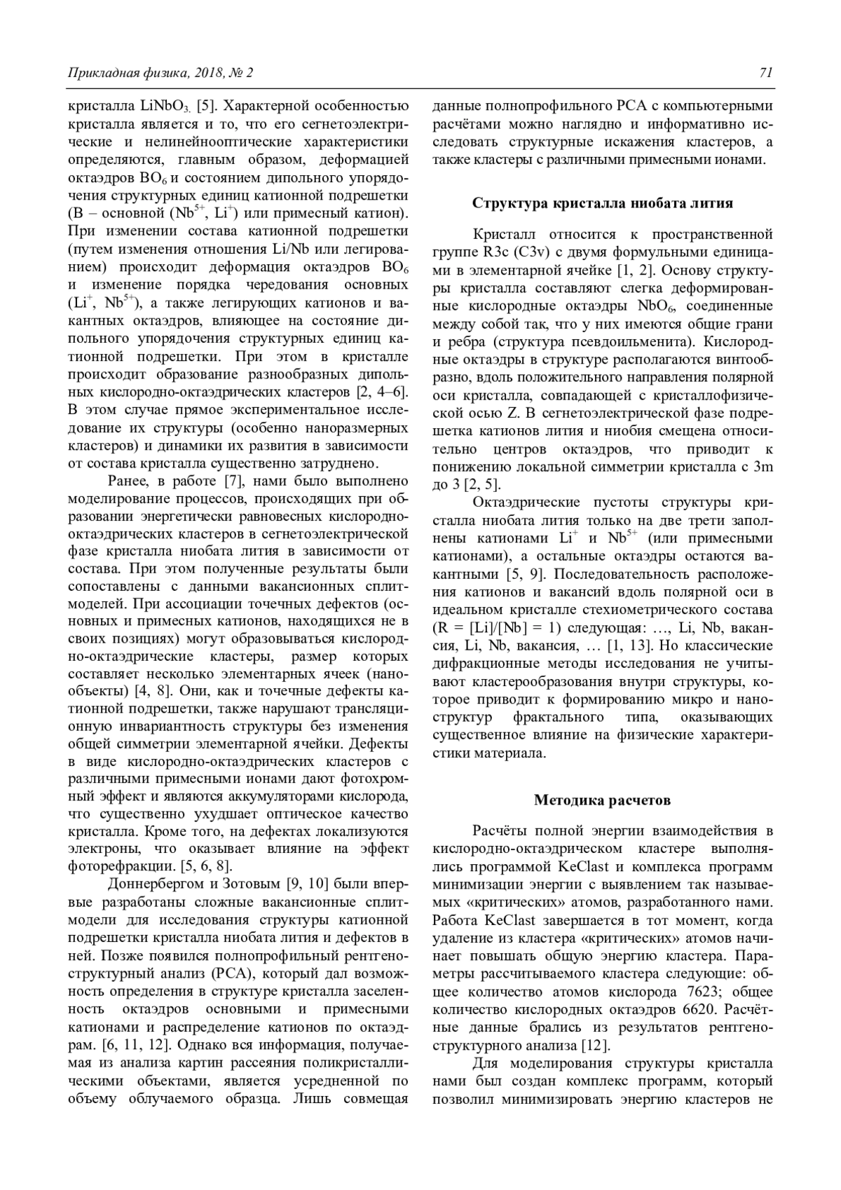 Стародуб О. Р., Воскресенский В. М., Сидоров Н. В., Палатников М. Н. Математическое моделирование кластерообразования в кристаллах ниобата лития 70