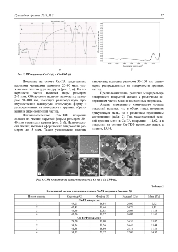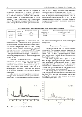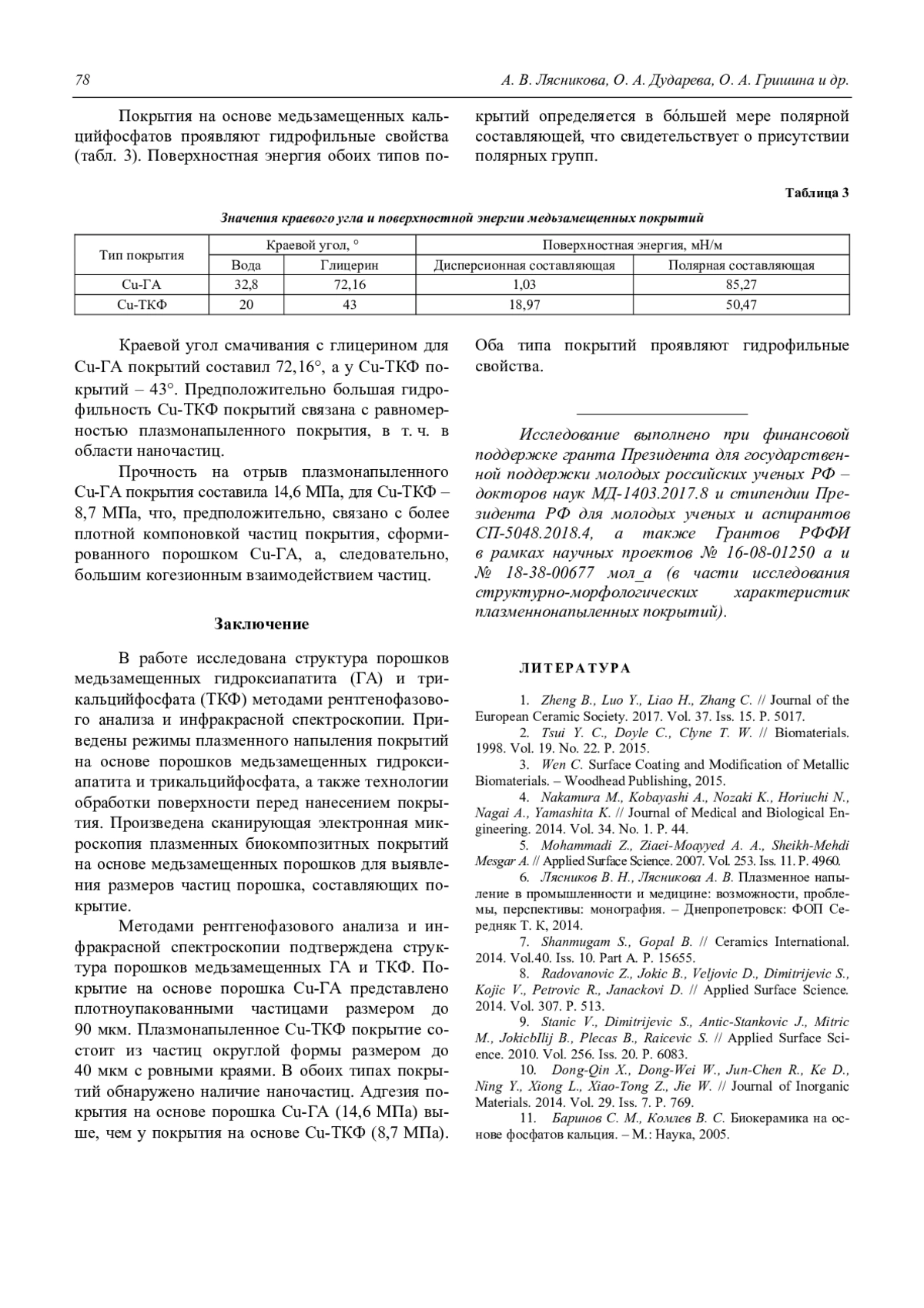 Лясникова А. В., Дударева О. А., Маркелова О. А., Гришина И. П., Лясников В. Н. Плазменные биокомпозитные покры-тия на основе медьзамещенных кальцийфосфатов 75