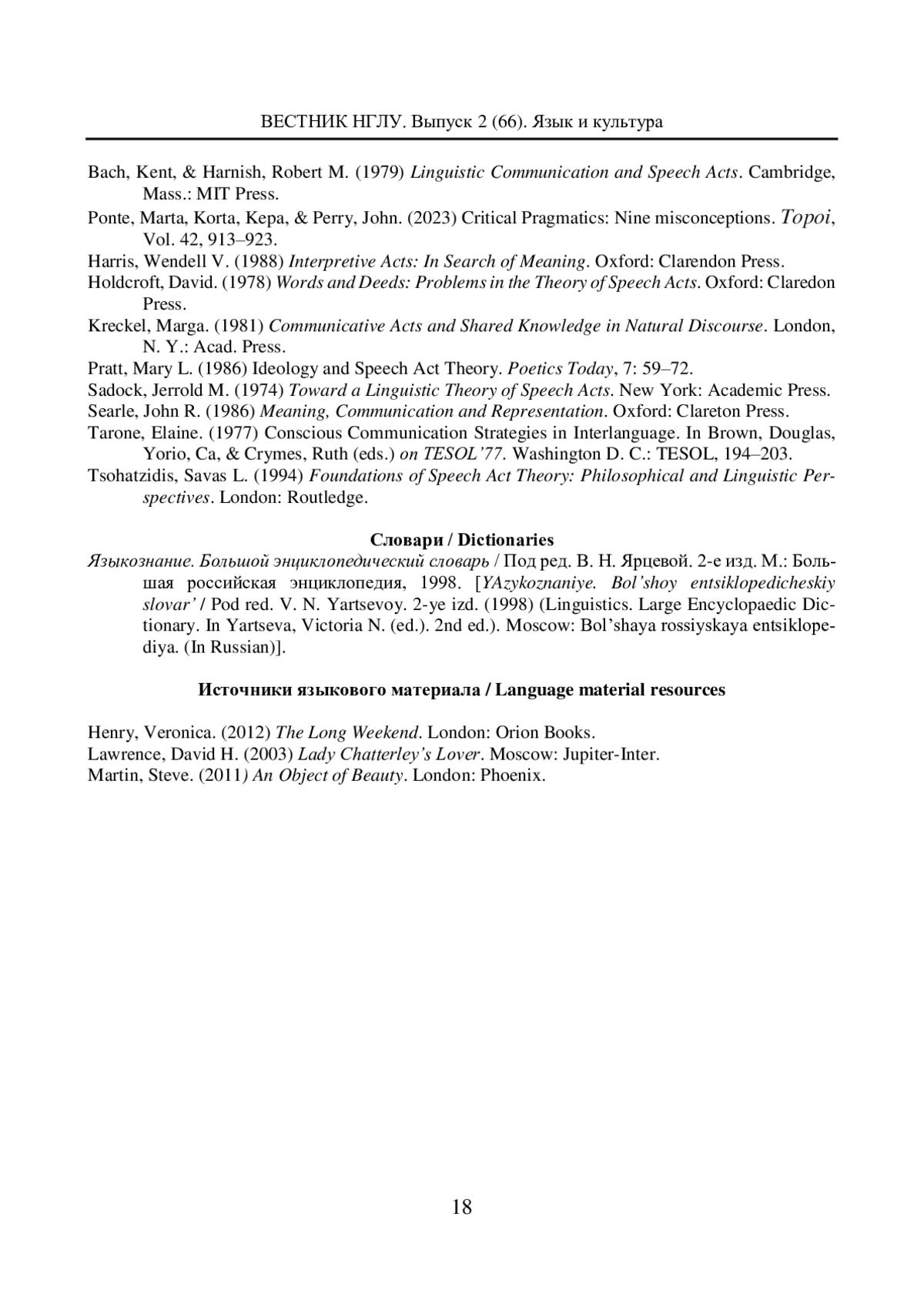 23. Sadock, Jerrold M. (1974) Toward a Linguistic Theory of Speech Acts. New York: Academic Press.