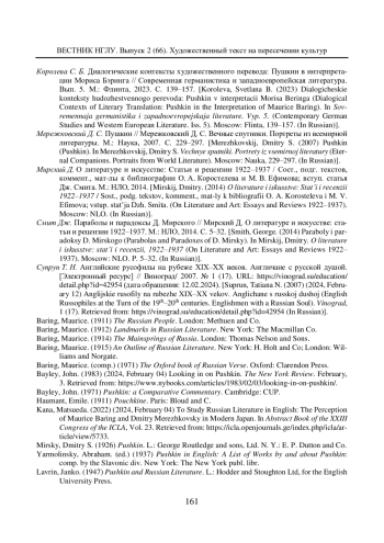 9. Королева С. Б. Диалогические контексты художественного перевода: Пушкин в интерпретации Мориса Бэринга // Современная германистика и западноевропейская литература. Вып. 5. М.: Флинта, 2023. С. 139-157.