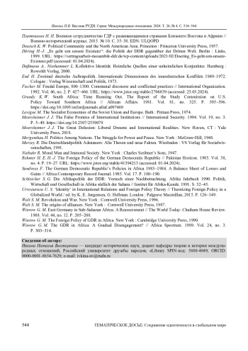 26. Winrow G. M. The GDR in Africa: A Gradual Disengagement? // Africa Spectrum. 1989. Vol. 24, no. 3. P. 303-314.