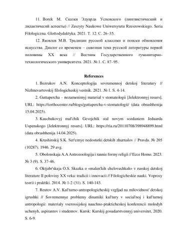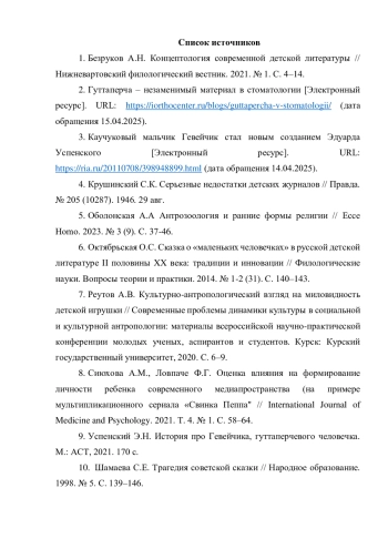 Статья: ИДЕЙНО-ХУДОЖЕСТВЕННОЕ СВОЕОБРАЗИЕ ПОВЕСТИ Э. Н. УСПЕНСКОГО «ИСТОРИЯ ПРО ГЕВЕЙЧИКА, ГУТТАПЕРЧЕВОГО ЧЕЛОВЕЧКА» (2025)