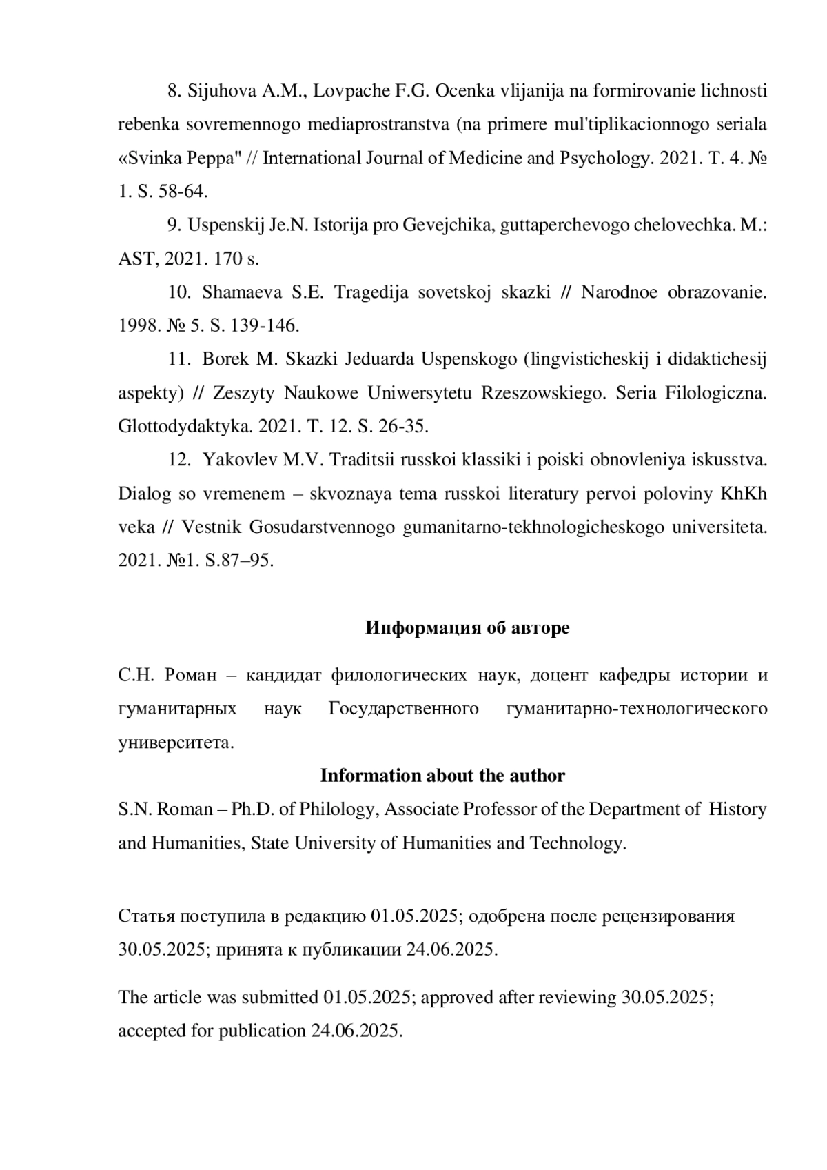 Автор (ы): РОМАН СЕРГЕЙ НИКОЛАЕВИЧ