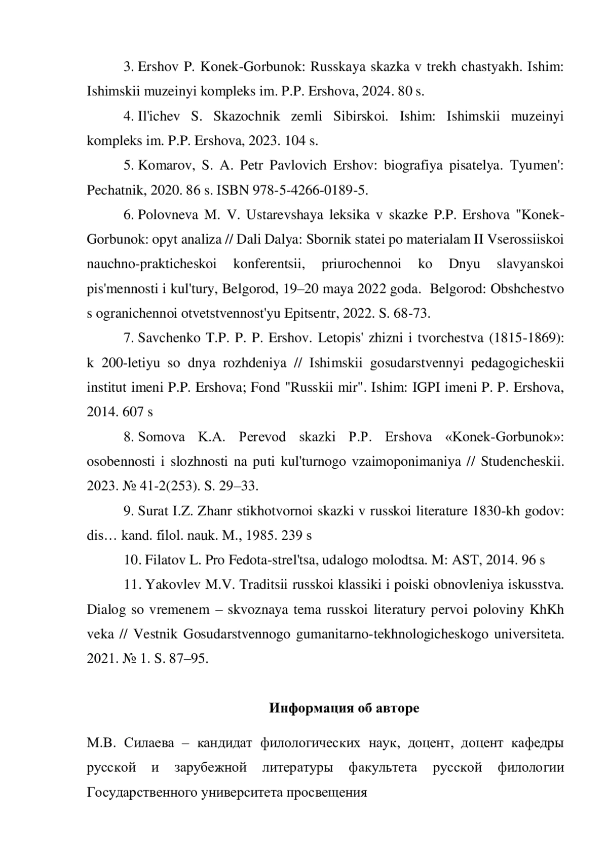 4. Ильичёв С. Сказочник земли Сибирской. Ишим: Ишимский музейный комплекс им. П.П. Ершова, 2023. 104 с.