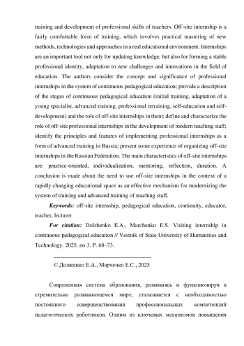 7. Кузнецов А.А. Стажировки как фактор модернизации системы подготовки педагогов // Педагогическое образование в России. 2020. № 3. С. 45-51.